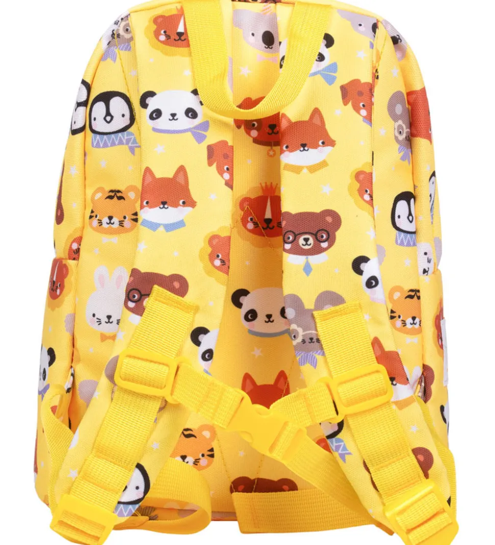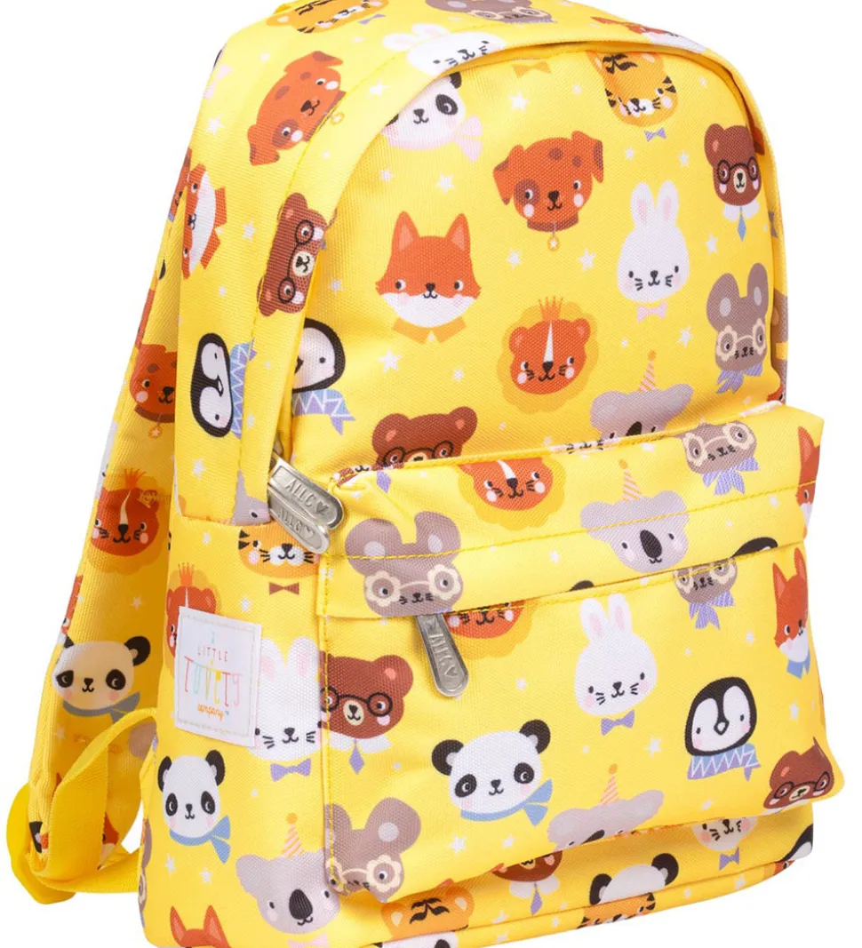 Sød A Little Lovely Company børnehavetaske i gul med et farverigt dyreprint.
