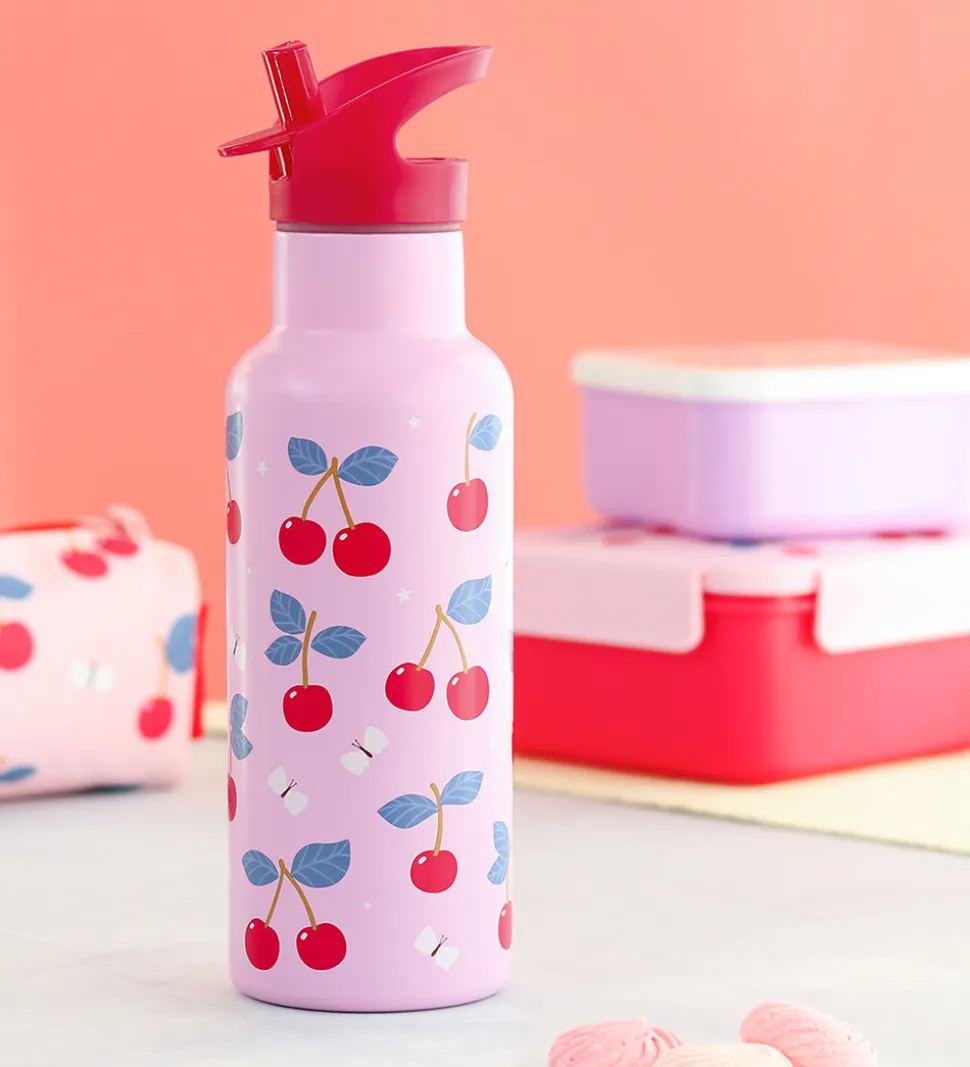 Fin A Little Lovely Company drikkedunk i rosa med et flot kirsebærprint.
