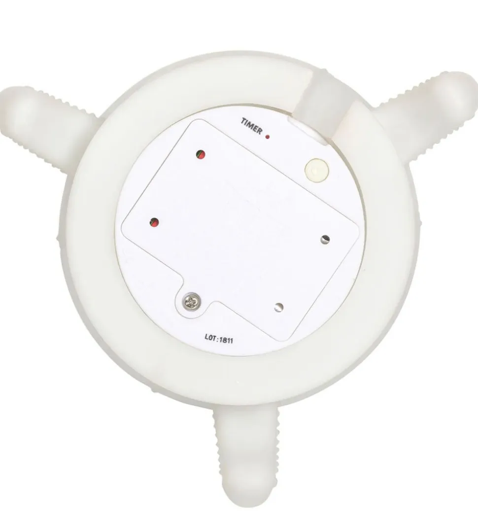 Lampen har LED-lys og bruger 3x AAA-batterier eller en normal EU 5V oplader. Den giver et blidt og hyggeligt lys og den har en indbygget timer-funktion som slukker lampen efter 15 min. På den måde kan barnet falde i søvn til det hyggelige lys.