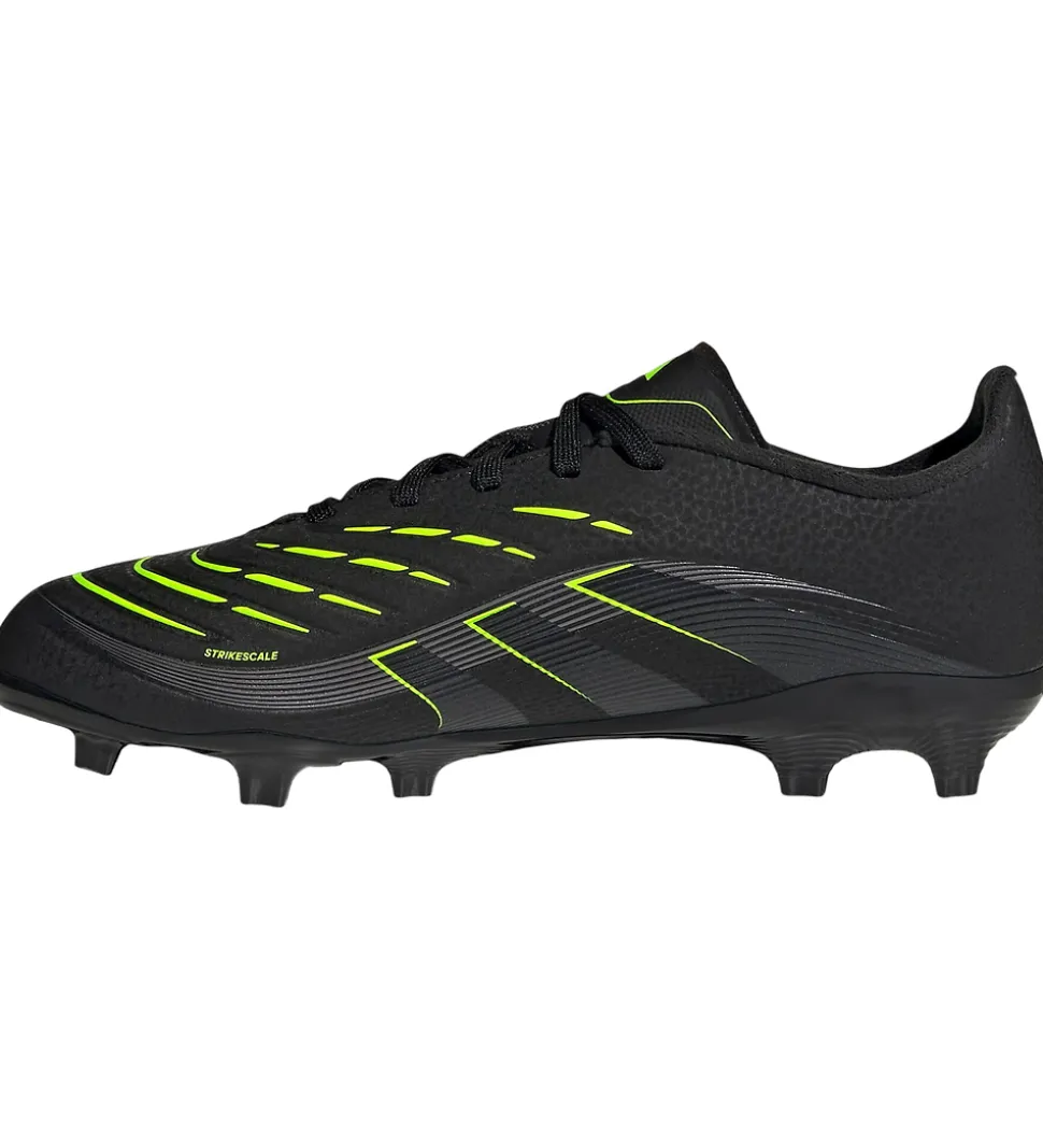 Stilfulde adidas Performance fodboldstøvler i sort med detaljer i gul, grå og sort og et iøjnefaldende gult Predator-logo. De har en slank profil og giver god kontrol på banen. Ideelle til optimalt spil.