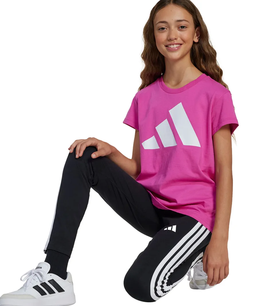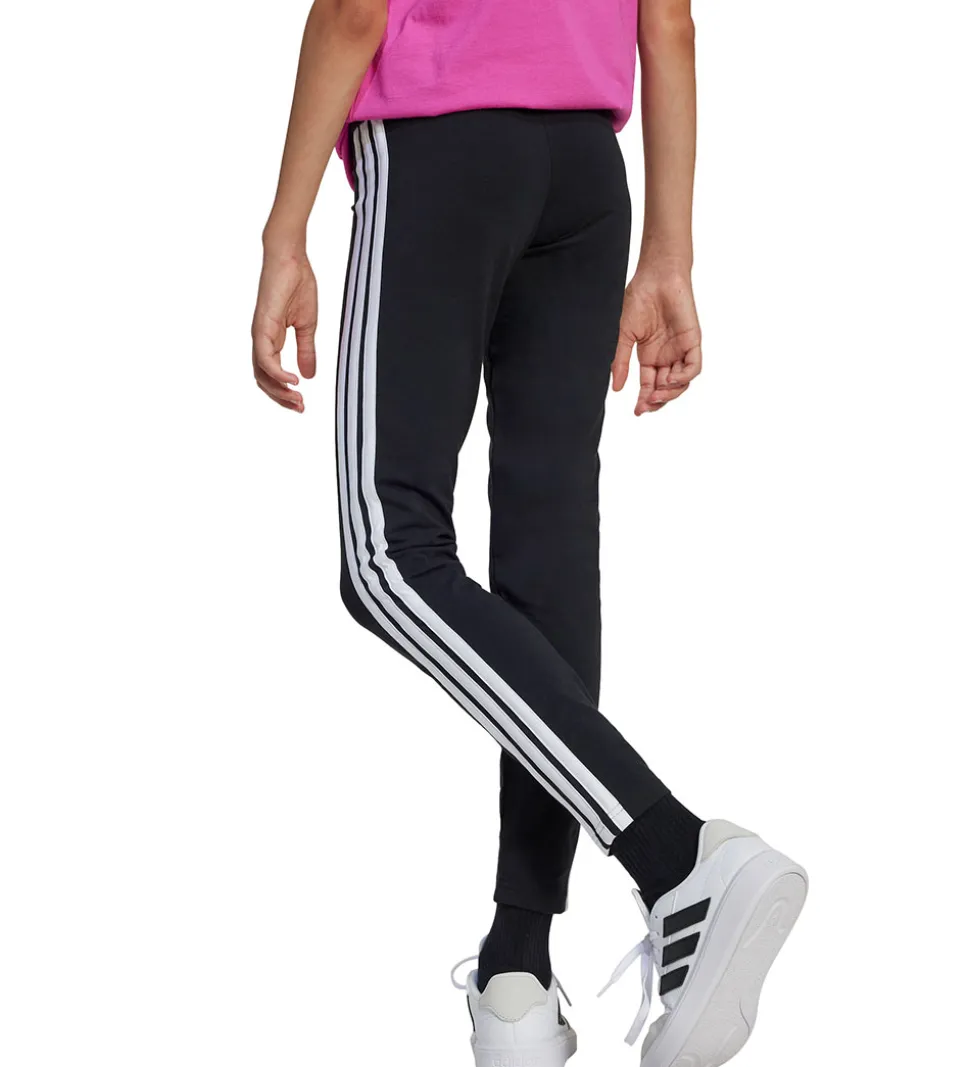 Flotte adidas Performance leggings i sort, og ned ad siderne er der tre hvide logostriber.