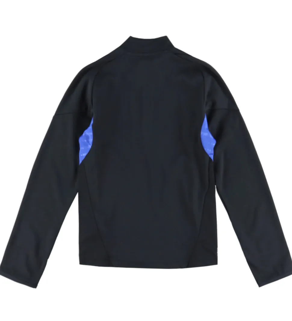 Flot adidas Performance træningsjakke i sort med detaljer i gul og blå, og fortil sidder der et logo for den engelske fodboldklub Manchester United.