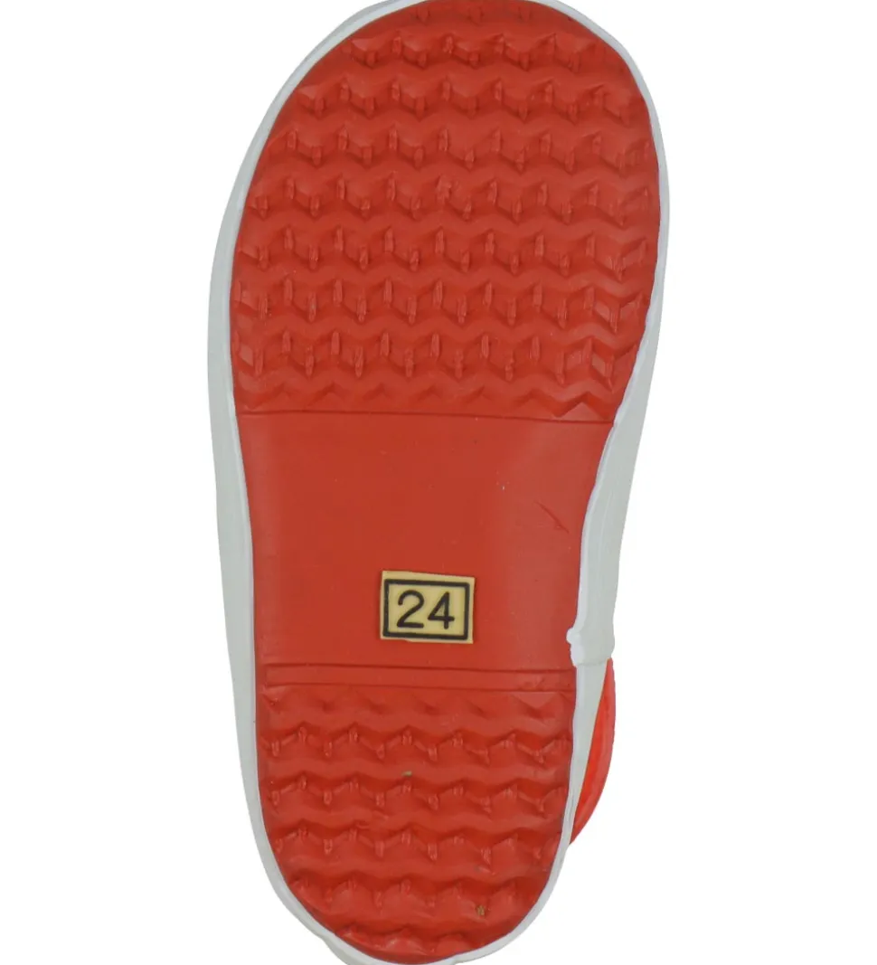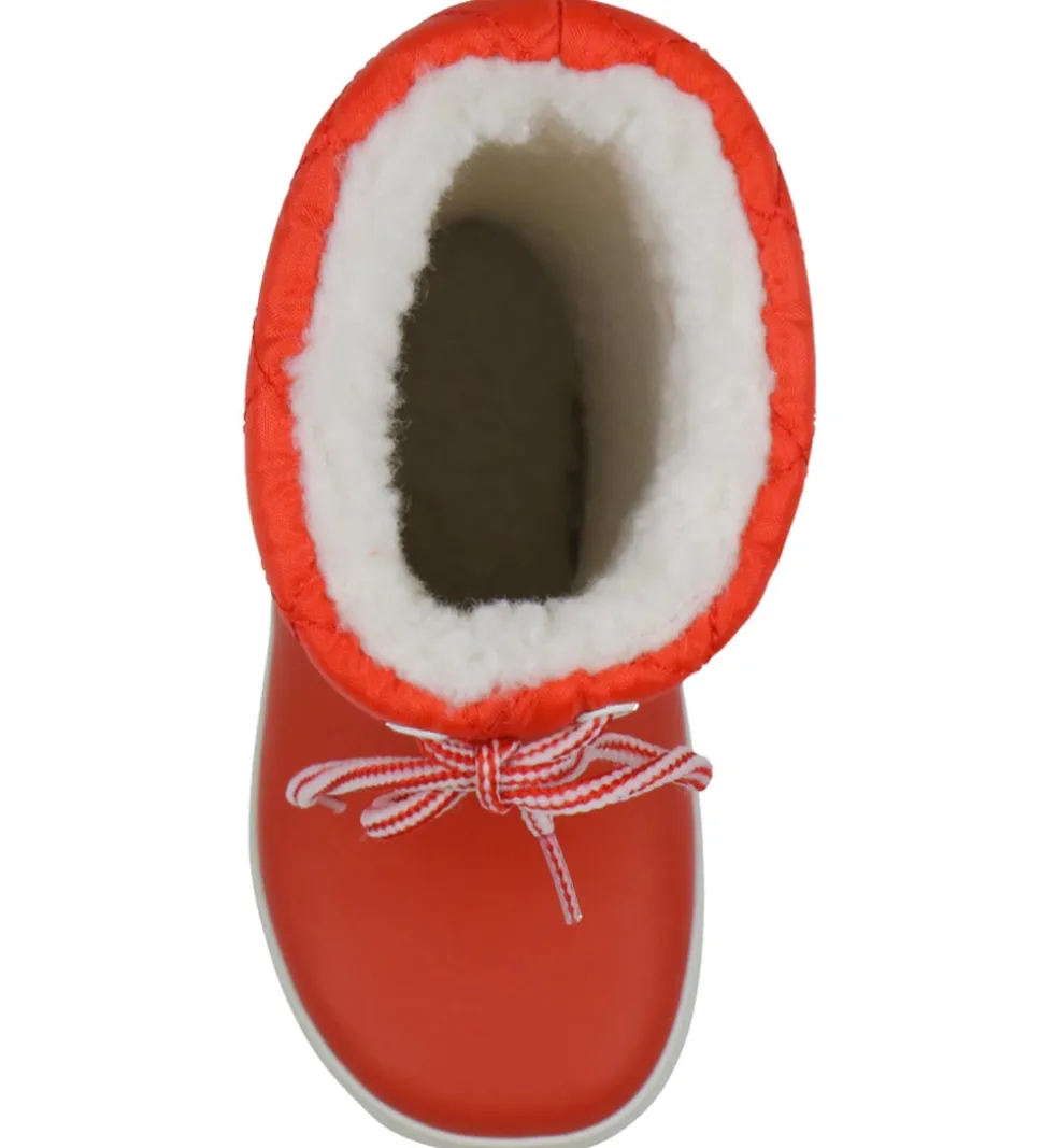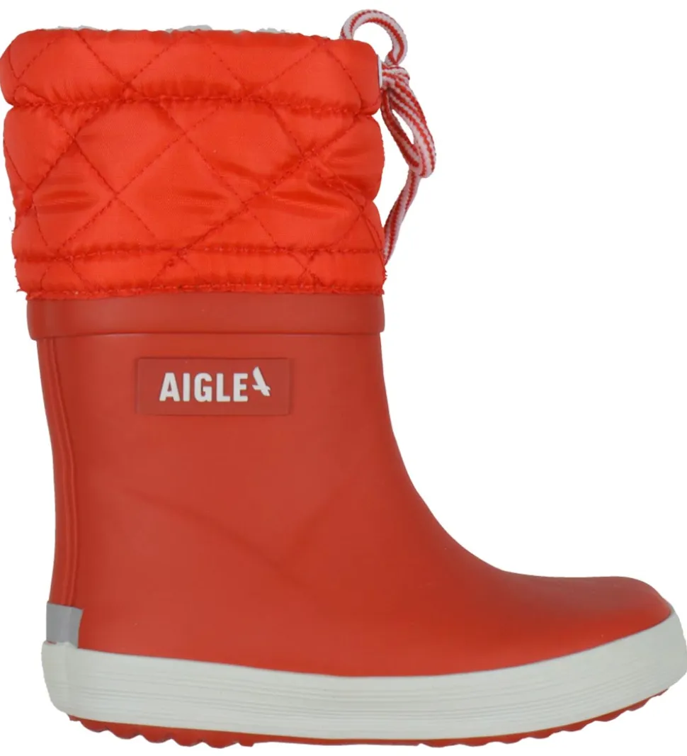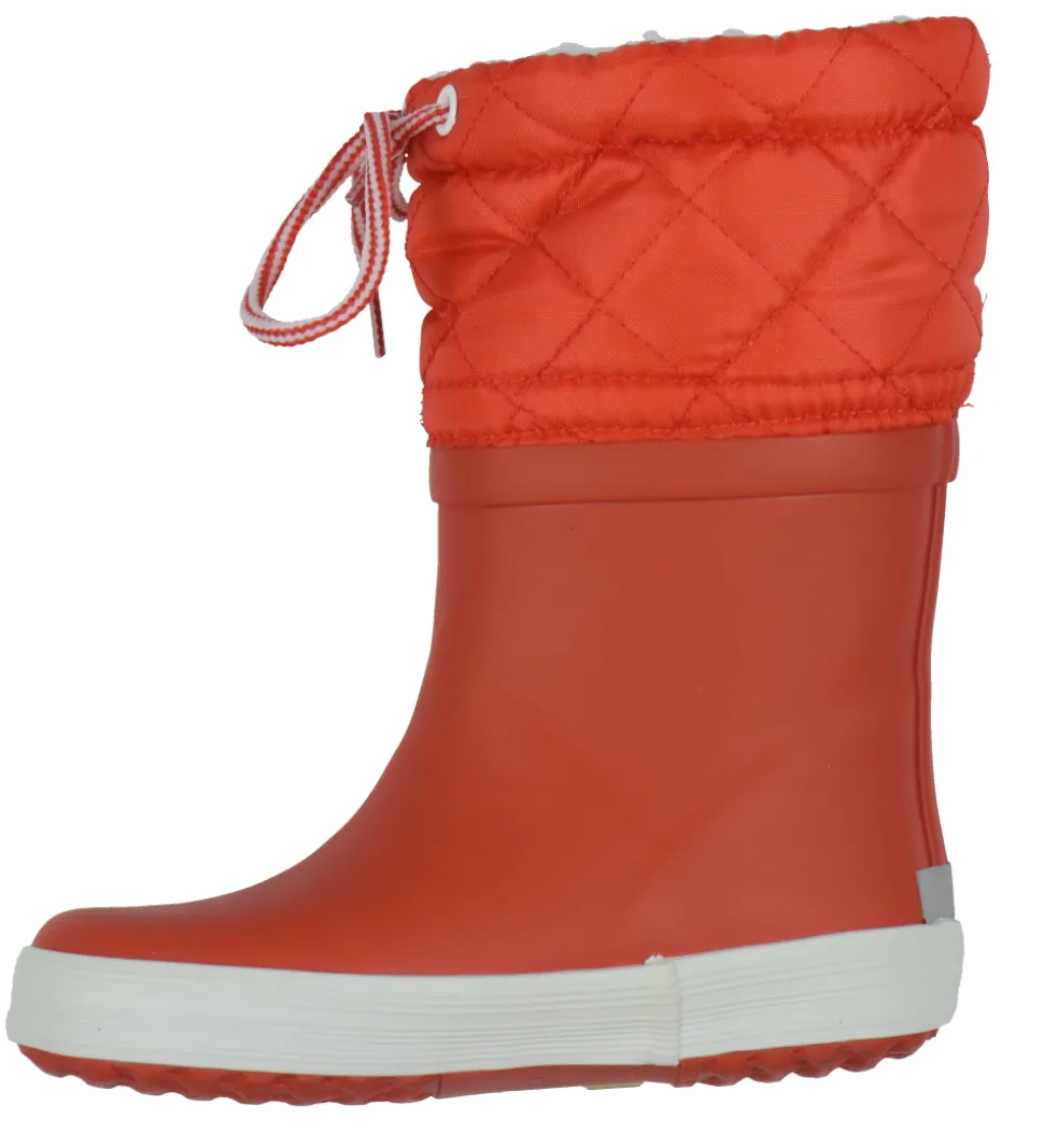 Smarte Aigle termostøvler i Giboulee-modellen i rød med en hvid stribe langs sålerne.
