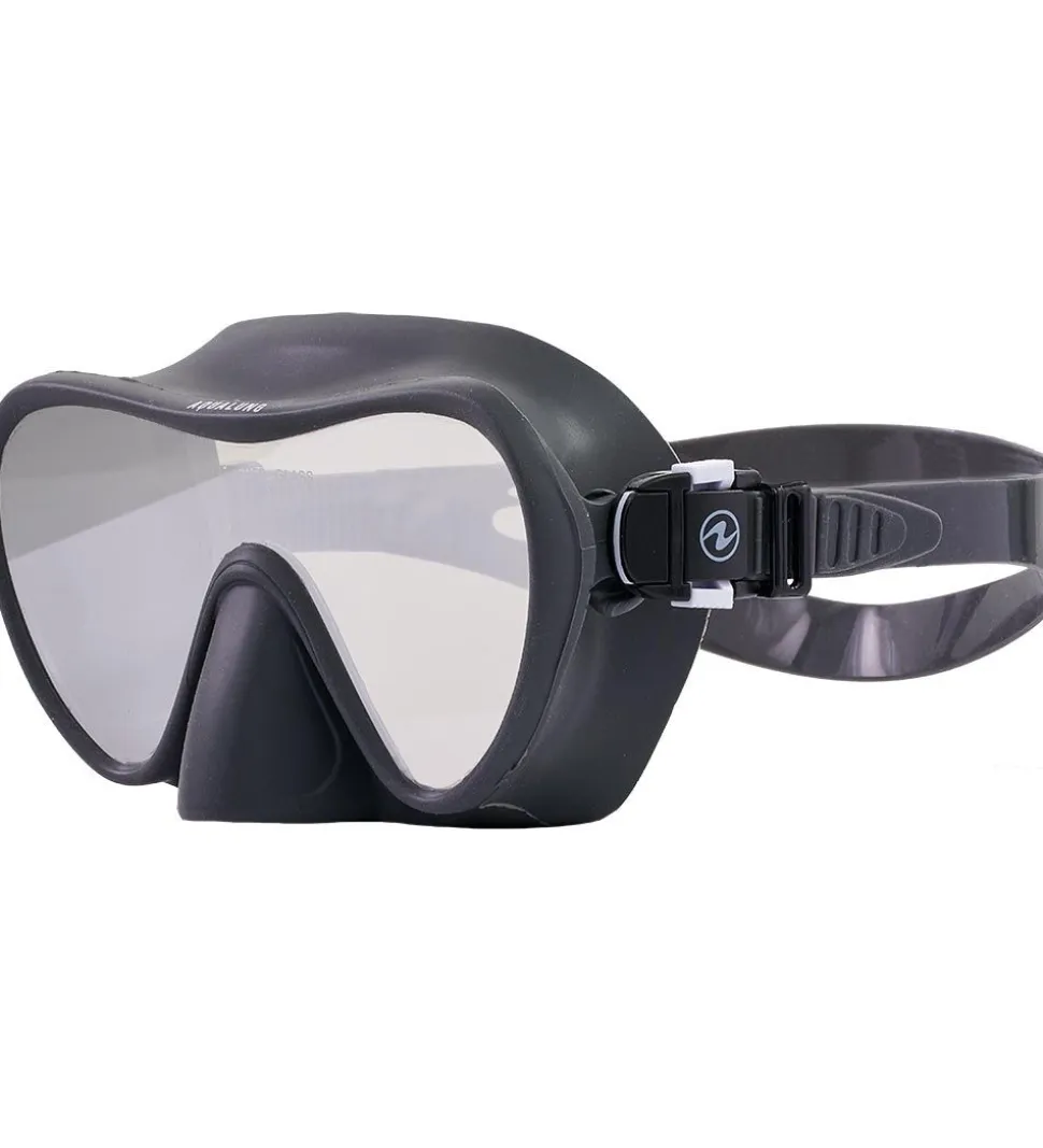 Smart Aqua Lung dykkermaske i mørkegrå med “Aqua Lung” skrevet fortil i hvid.