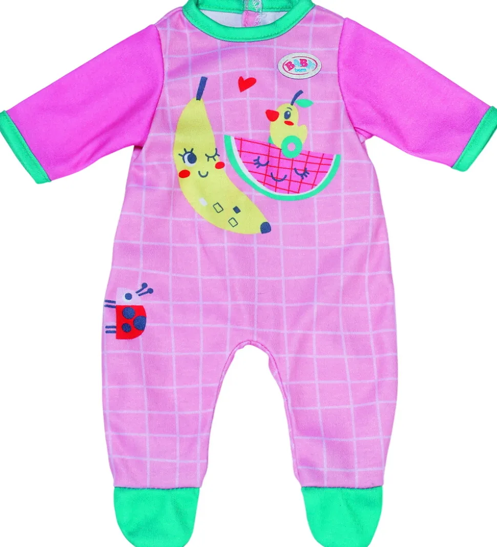 Skøn BABY born dukketøj i rosa med print banan, fugl og mariehøne samt kontrastkanter i grøn og pink.