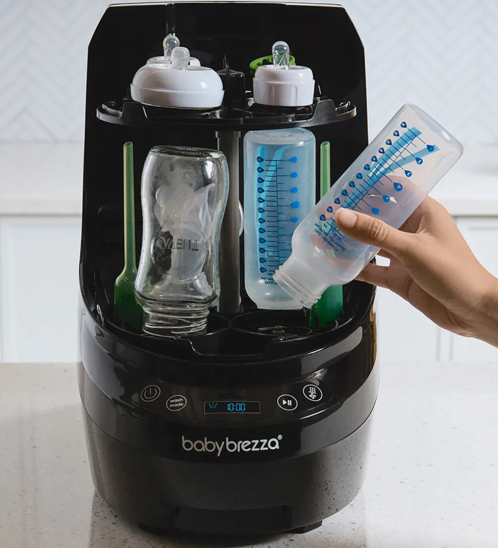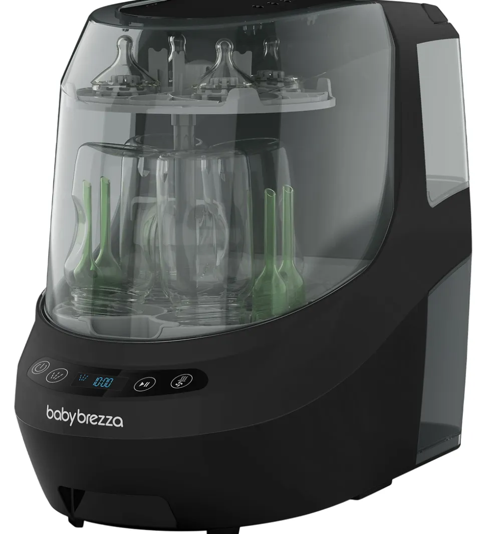 Baby Brezza flaskevaskeren vasker delene med 20 højtryksstråler, og den fjerner 99,9% af alle bakterier med dampvarme, hvorefter den tørrer delene med varm luft, som er filtreret af et HEPA-filter. Maskinen bruger desuden 50% mindre vand end ved håndvask.