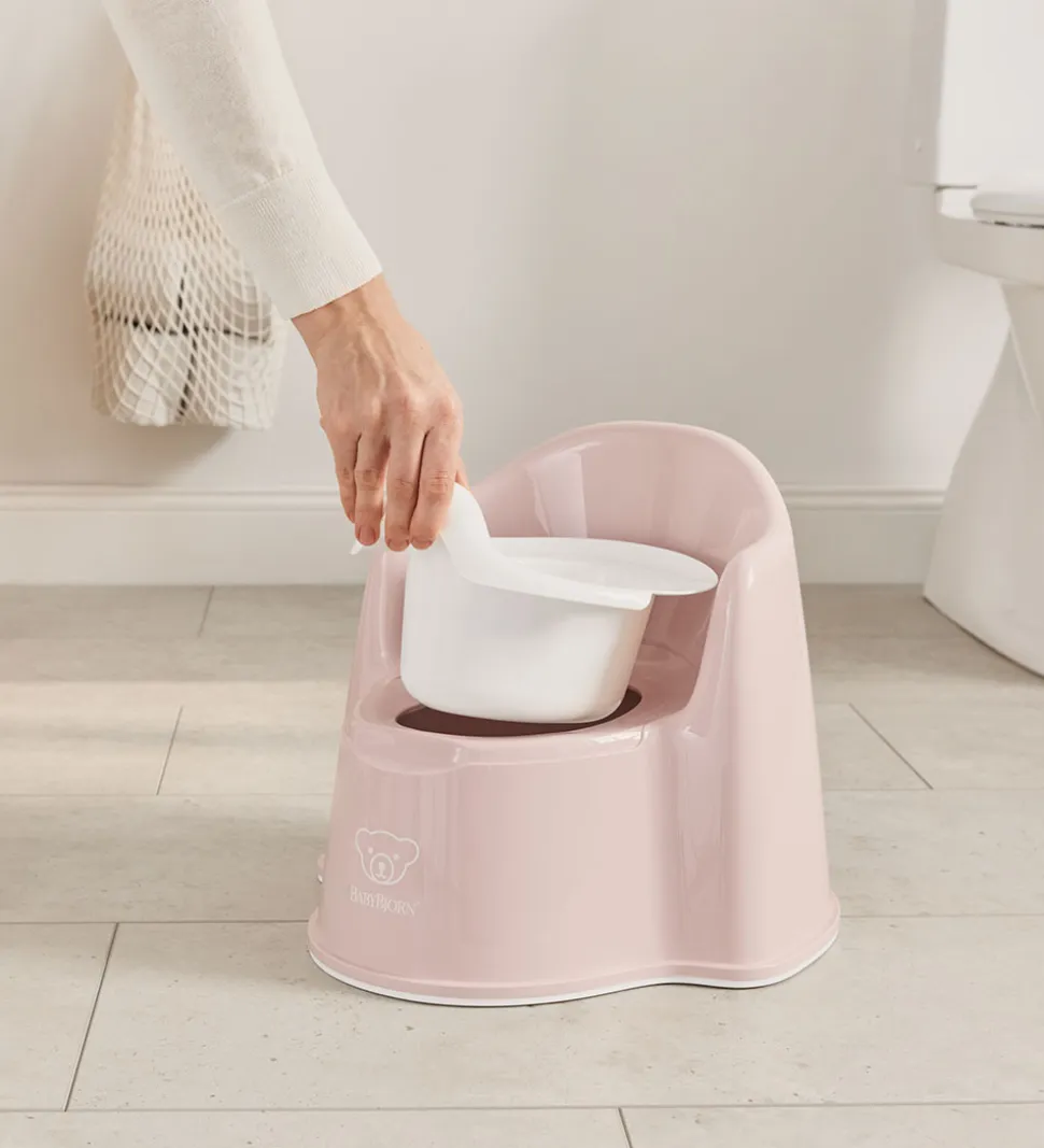 Flot BabyBjörn potte i lys rosa med et logoprint på fronten.