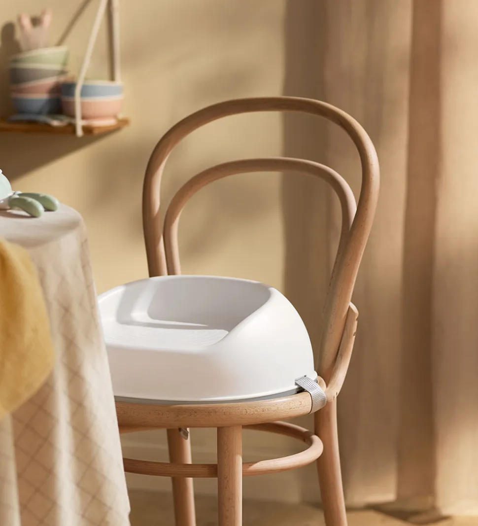 Praktisk BabyBjörn stoleforhøjer i hvid.