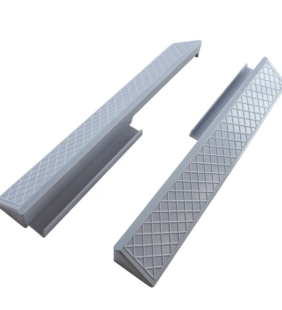 Praktiske BabyDan fodplader til sikkerhedsgitter i grå.
