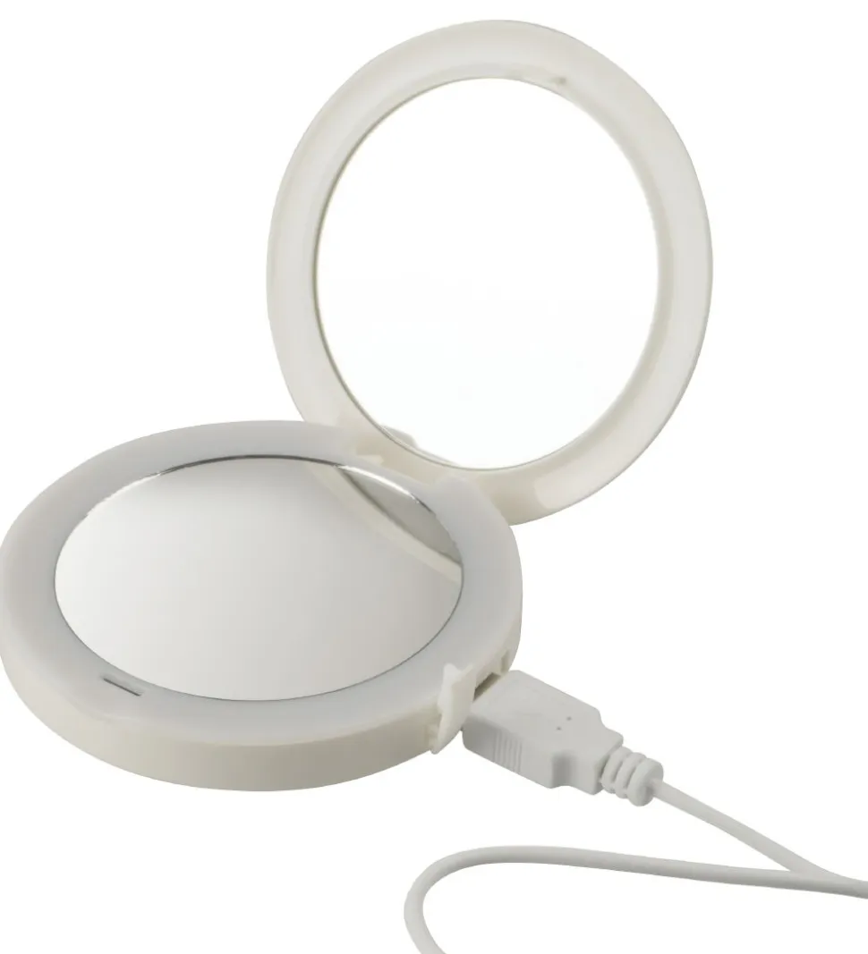 BaByliss makeup spejlet er praktisk at have med på farten, da det har mange smarte funktioner. Spejlet har to spejl, et med 1x forstørrelse og et med 2x forstørrelse. Spejlet har smarte LED lys i den nederste del, som kan tændes med en knap på siden.