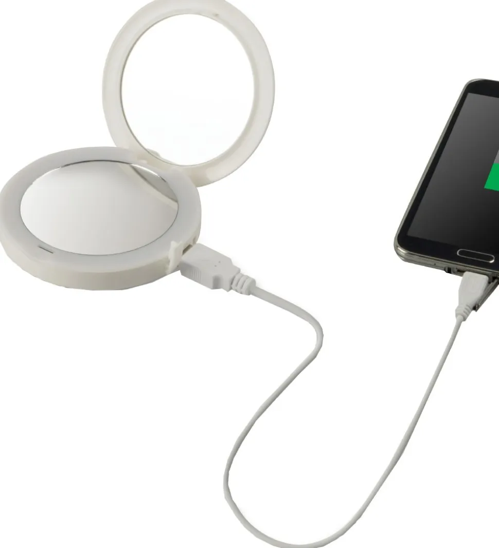 Spejlet kan endda oplade de fleste USB enheder, som for eksempel en telefon eller tablet. Spejlet oplades med et medfølgende USB kabel.