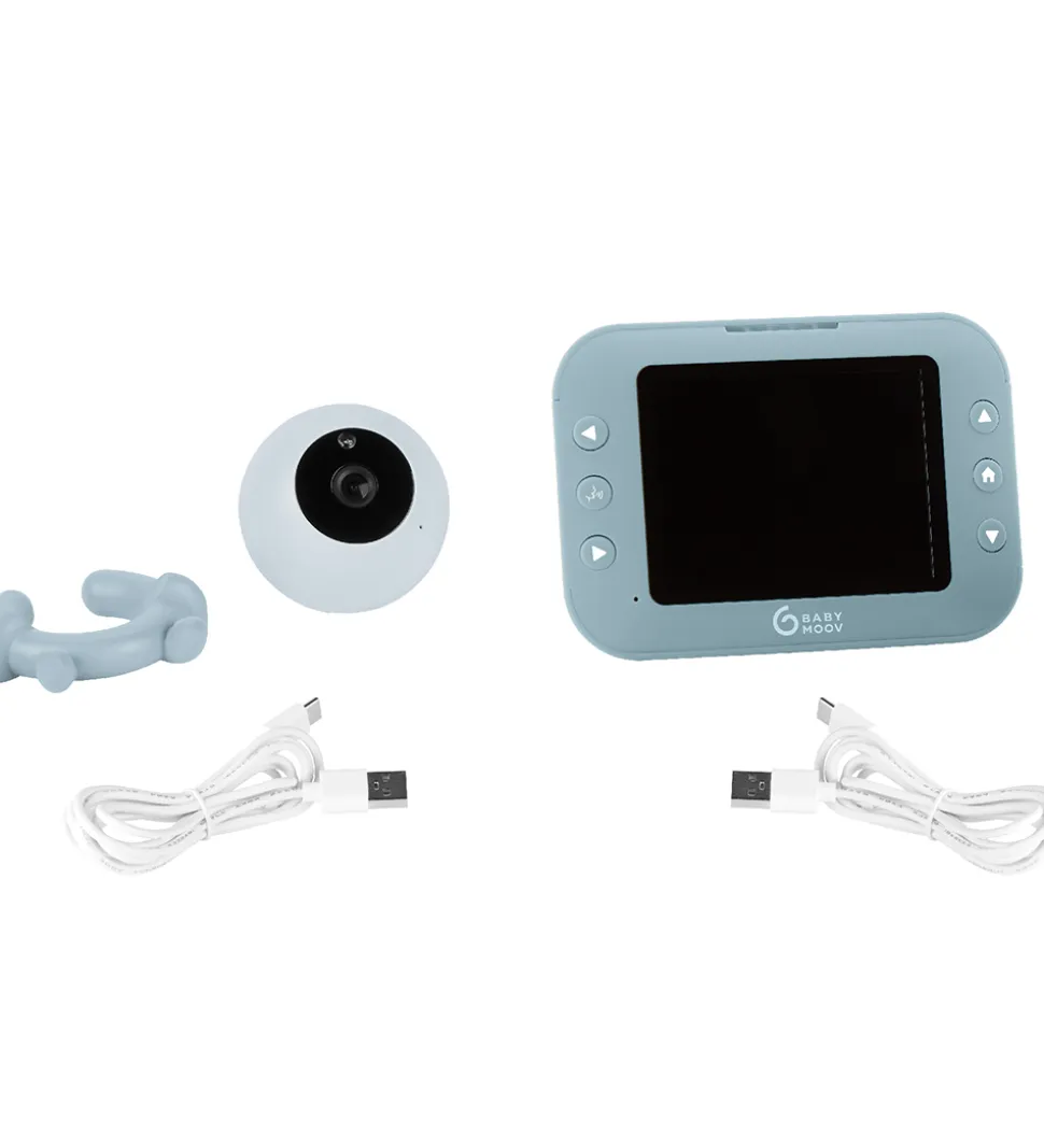 Babymoov babyalarm består af to trådløse enheder, videokamera og 3,5″ skærm, med genopladelige batterier (USB-C-ladekabler medfølger). Babyalarmen har disse egenskaber og funktioner: