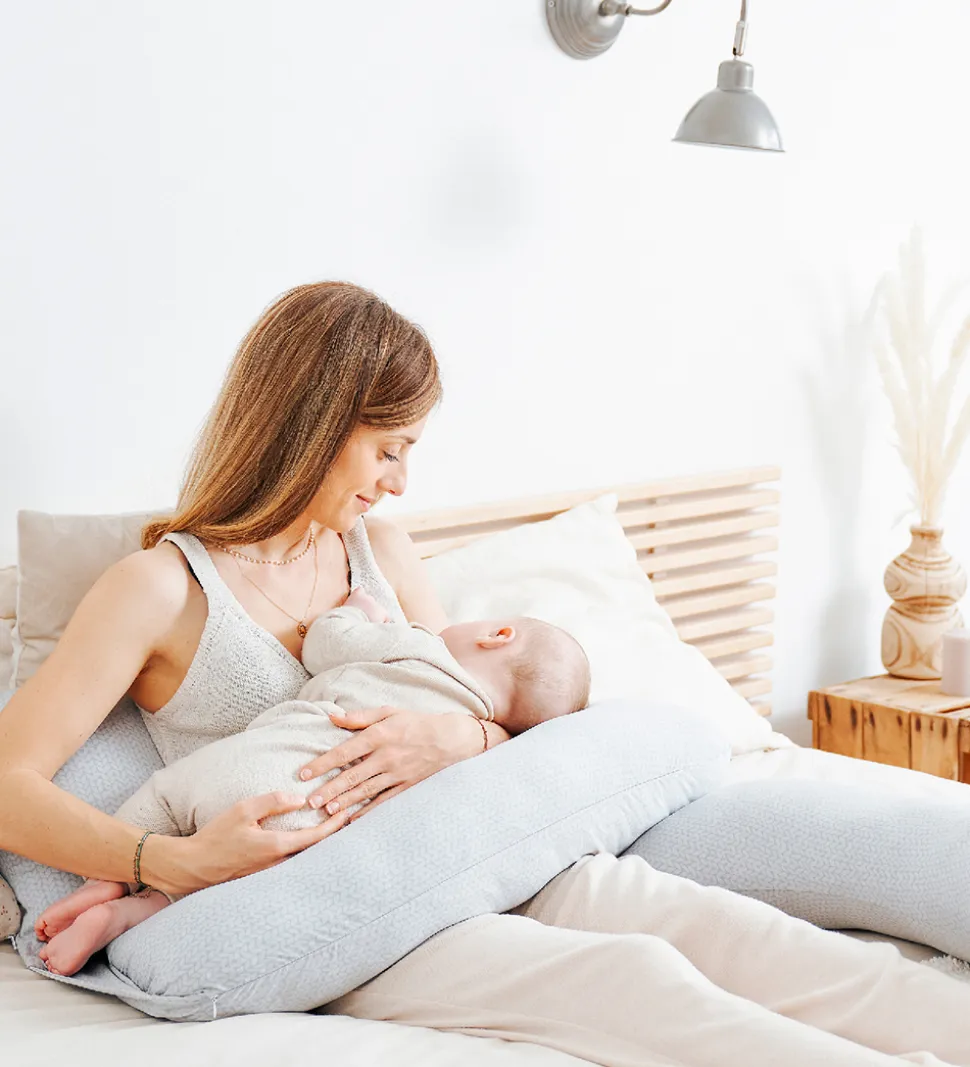 Lækker Babymoov graviditets-/ammepude i grå med et fint allovermønster.