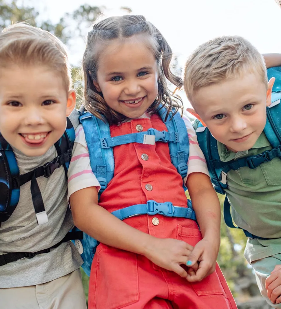 I klappen foroven er der et praktisk regnslag i neongul. Der medfølgeren en fin lille taske med ekstra velcromærker, så tasken kan dekoreres og tilpasses barnets helt egen stil ved at skifte mellem 5 forskellige velcromærker.