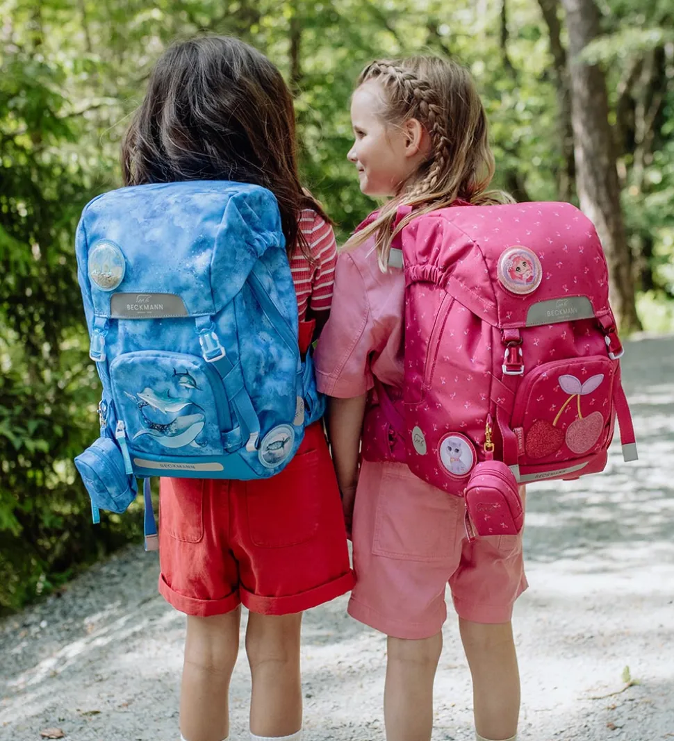 Beckmann skoletasken har en fast ryg med en kraftig vatting, som er bygget op omkring den anatomiske ryg, hvilket giver en optimal ergonomisk støtte. Der er brede, vatterede skulderremme, som kan justeres i længden, og tasken har et justerbart brystspænde samt et hoftebælte. På hoftebæltet er der spænder, som en gymnastiktaske kan klikkes fast i.