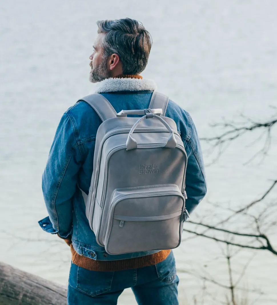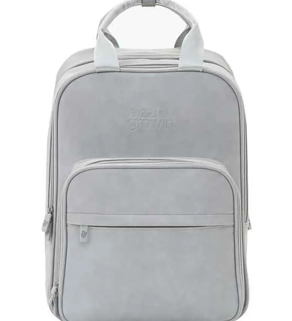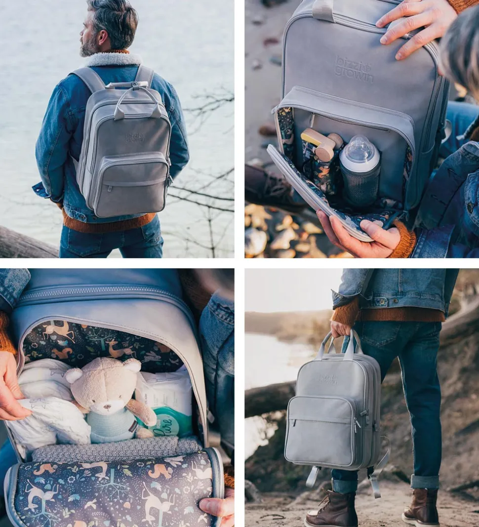 Den kombinerede pusletaske og rejseseng fra Bizzi Growin har justerbare, polstrede skulderstropper samt to bærehanke i toppen med trykknapssamling, og der medfølger også barnevognsstropper, så den kan fastgøres til barne- eller klapvognen.
