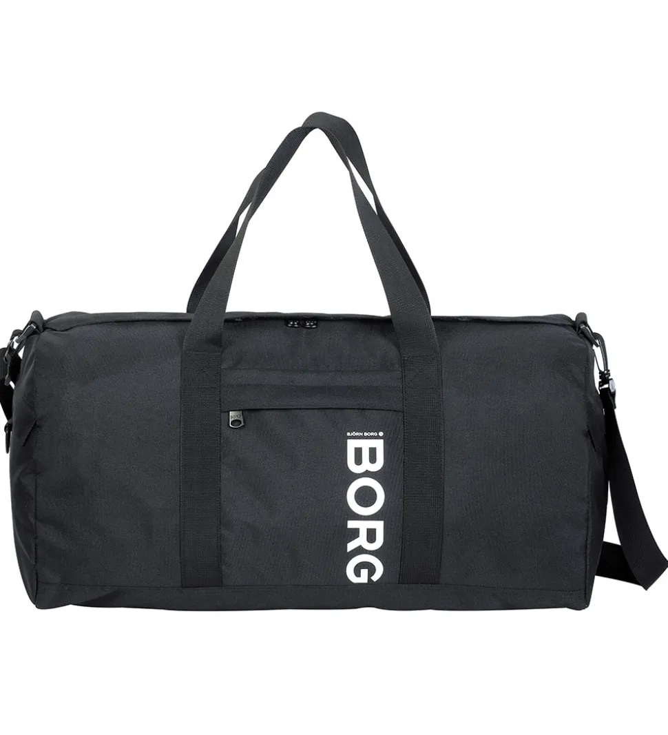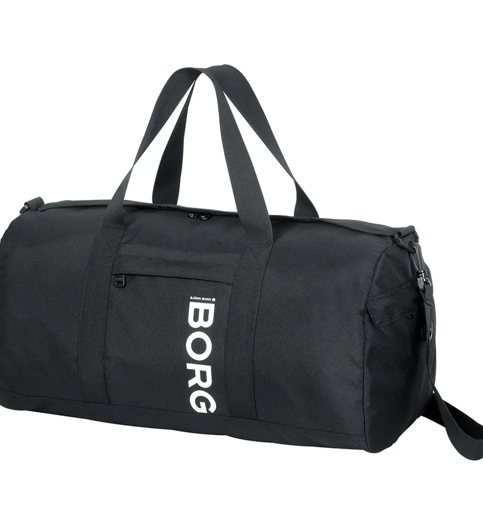 Sej Björn Borg sportstaske i sort med et hvidt logoprint på den ene side.