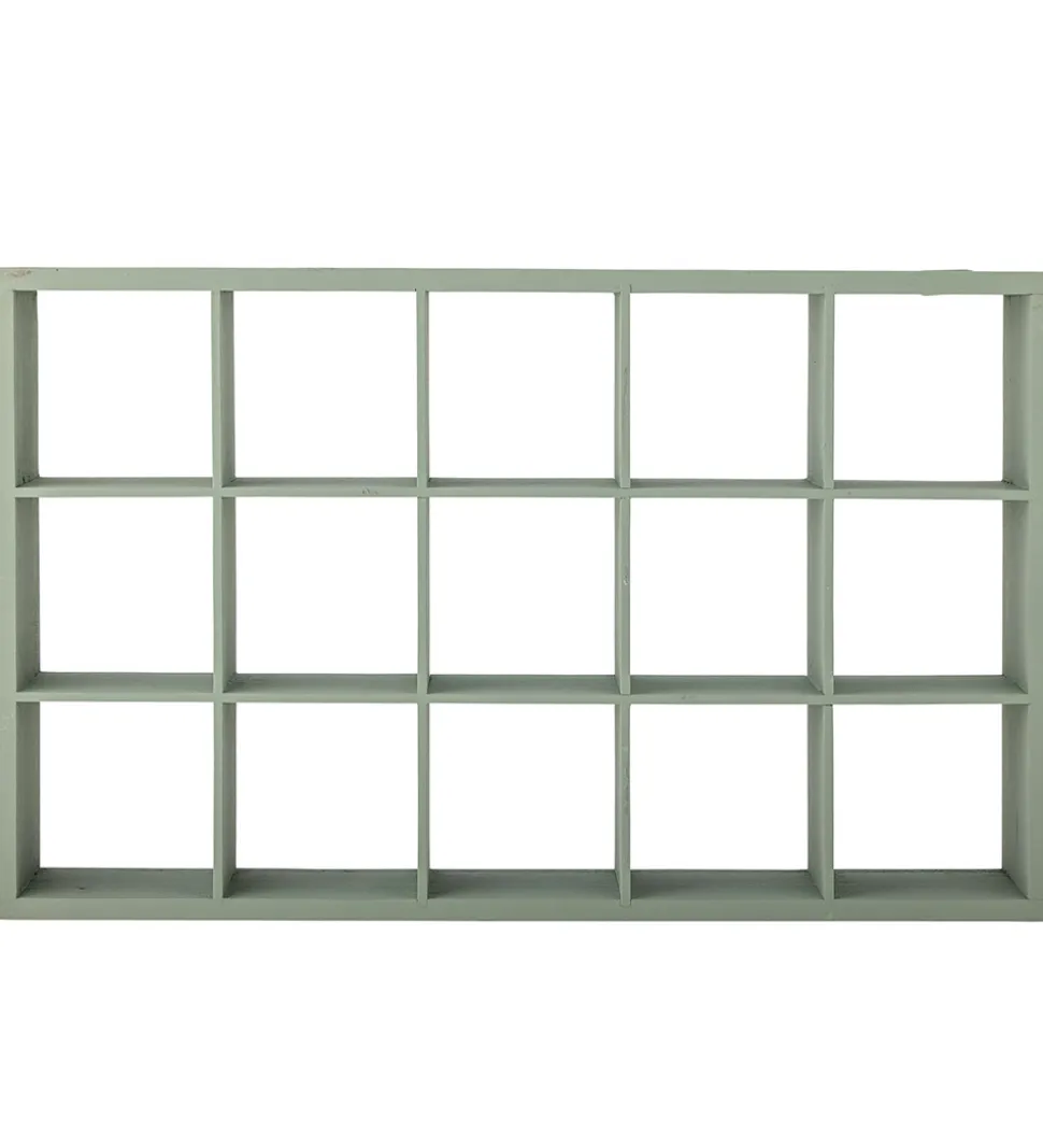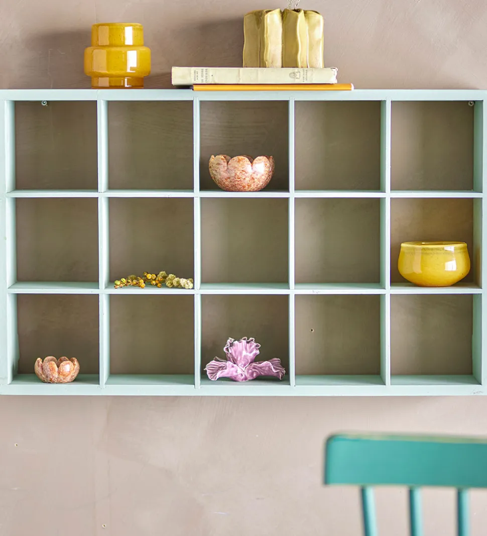 Bloomingville hylden er dekorativ og kan hænges på væggen med både lodret og en vandret orientering. Hylden er inddelt i 15 mindre rum.