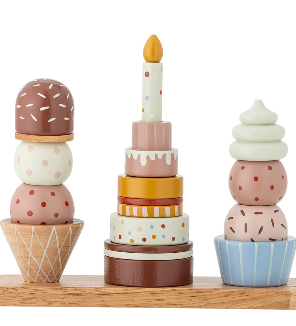 Farverig Bloomingville legemad i en kombination af rosa og brune nuancer med forskellige kager og is. Sættet inkluderer sjove detaljer, der inviterer til fantasifuld leg og kreativ opbygning.