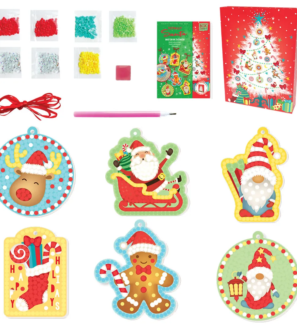 Spændende BOX CANDIY kreasæt i form af dette diamant-kunstsæt til at lave dine egne jule-til og fra-kort med temaet “Totally Santa”.
