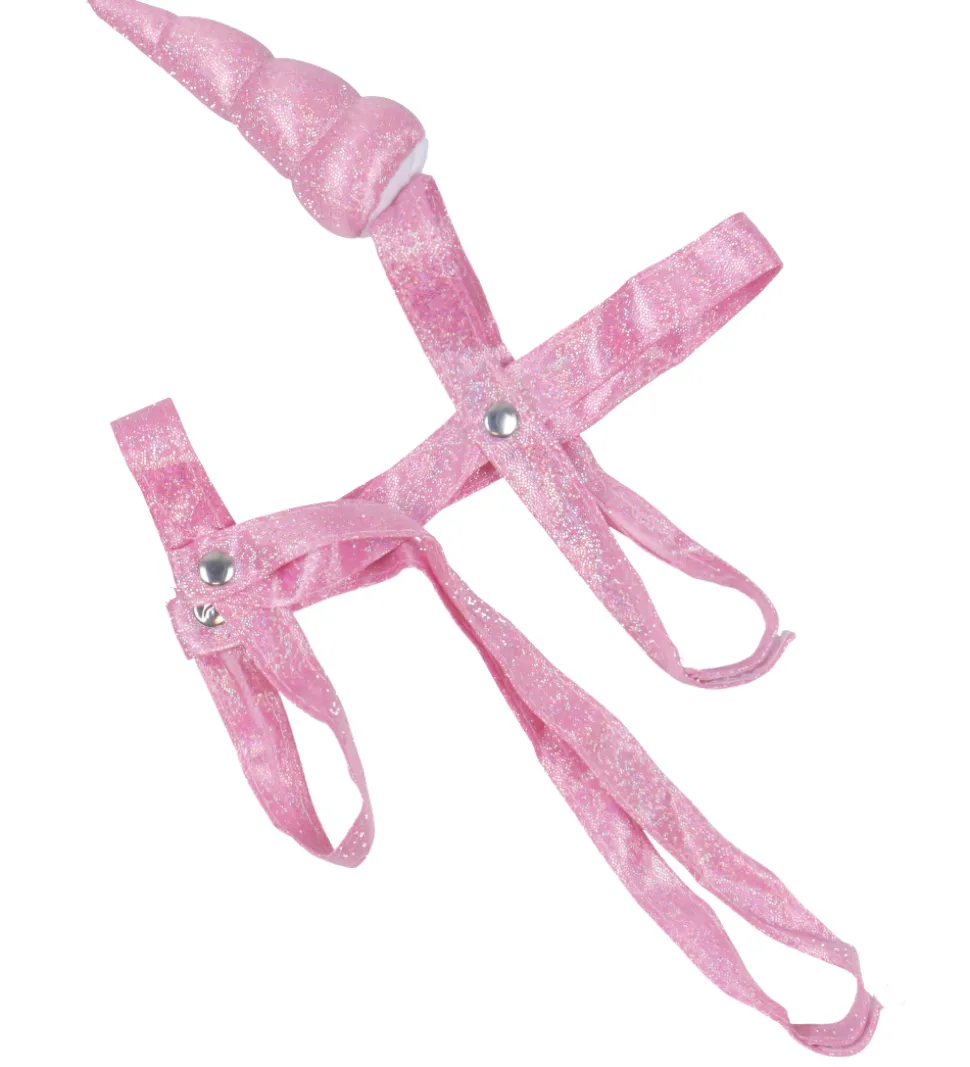 Smart by ASTRUP enhjørninghorn og grime til brandets flotte kæpheste. Enhjørninghornet og grimen er i pink med skinnende glimmer.