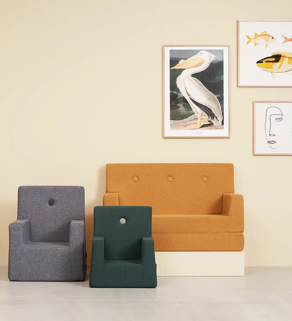 by KlipKlap lænestolen vejer meget lidt så den er nem at flytte rundt på for børnene, og med stolens bløde linjer og komfortable siddeplads er den ideel til leg eller afslapning. Lænestolen har en ekstra lomme i siden som kan bruges til at opbevare bøger eller andre småting.
