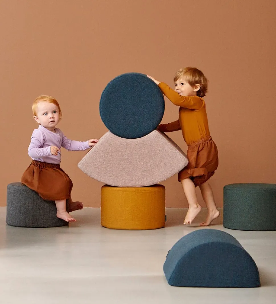 by Klipklap tumlemøblet har en rund form med en flad bund og top. Det kan bruges som puf eller skammel, men kan også indgå i børnenes leg på sjove og kreative måder. Ved at kombinere flere by KlipKlap tumlemøbler får man endnu flere muligheder for at skabe et legesygt univers på børneværelset, i stuen eller i legekrogen.