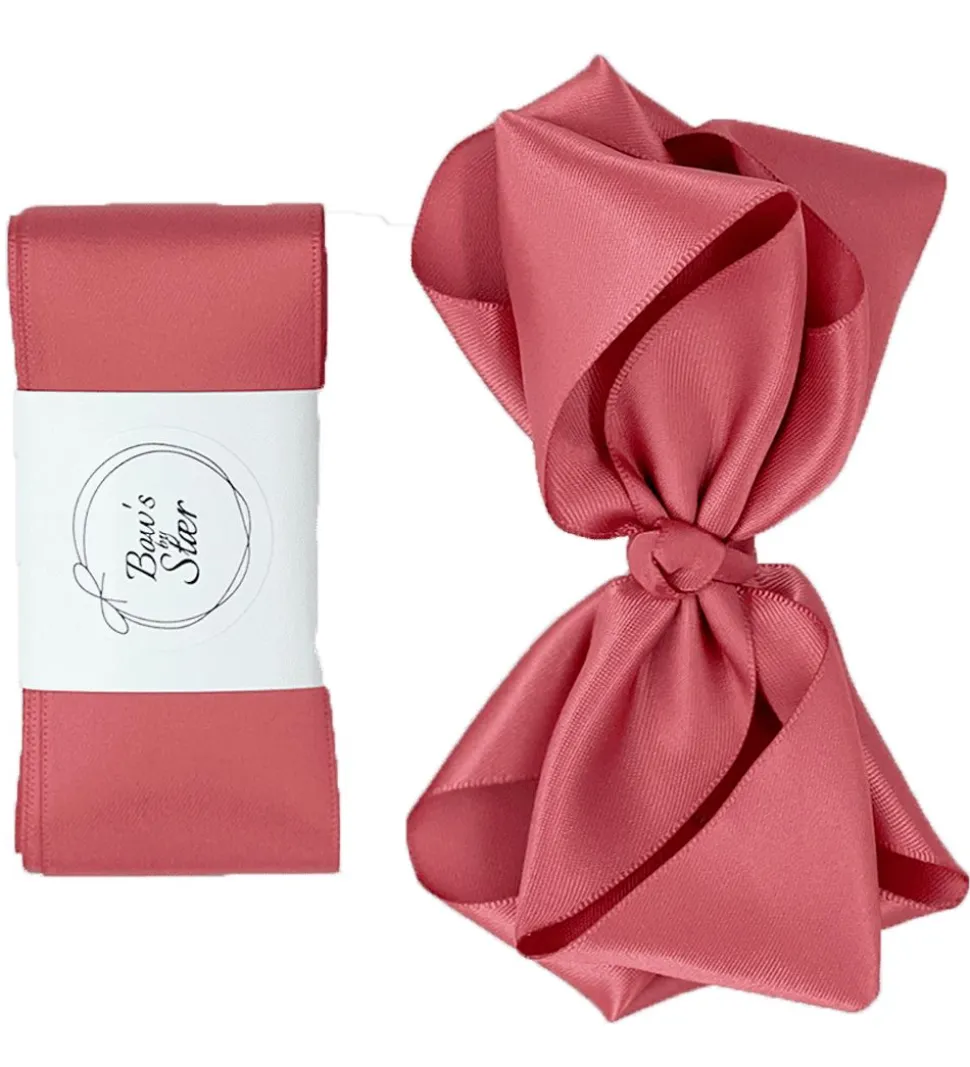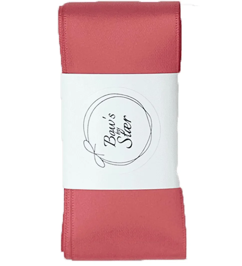 Sødt By Stær dåbsbånd i ensfarvet mørkerosa satin.
