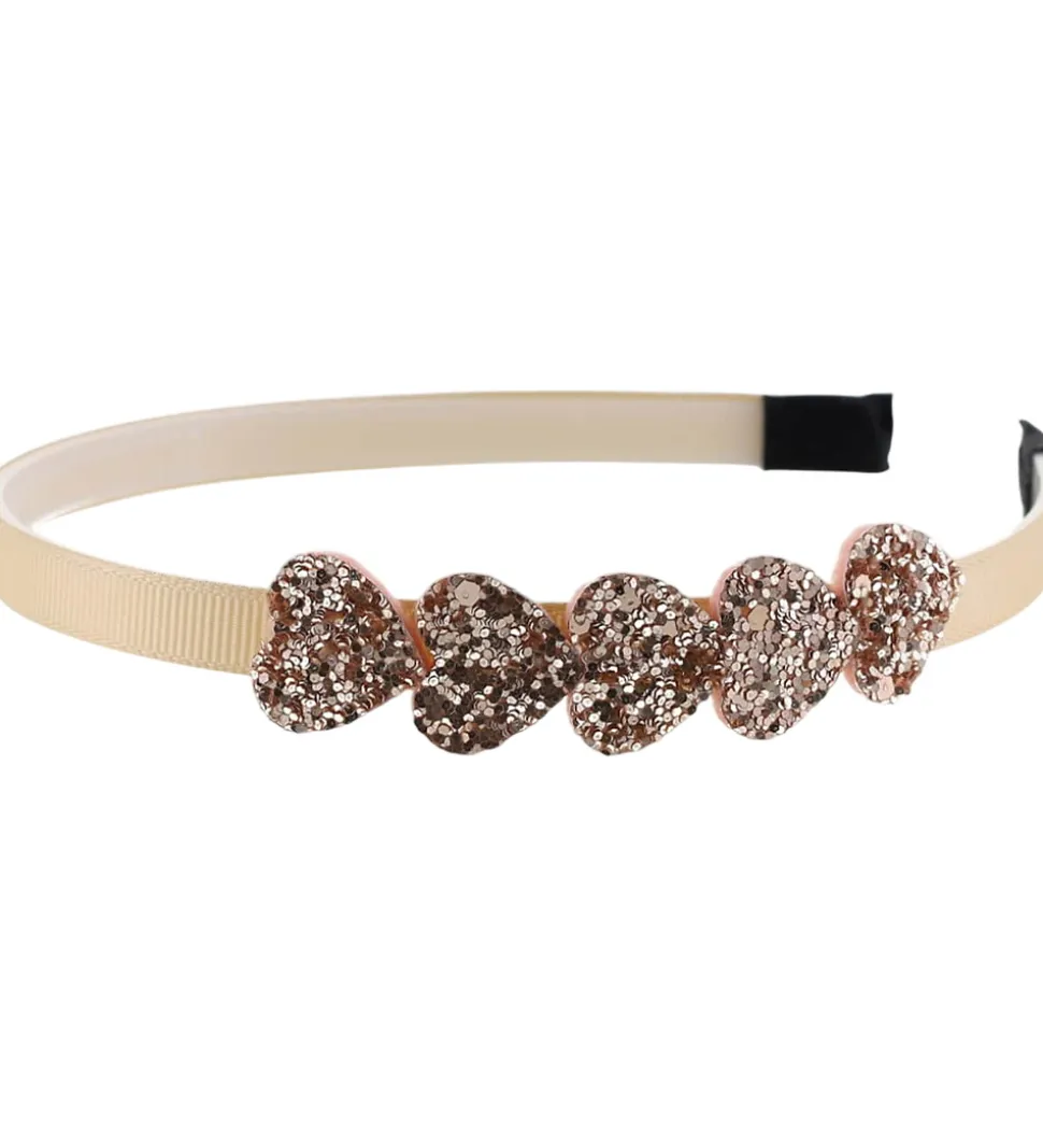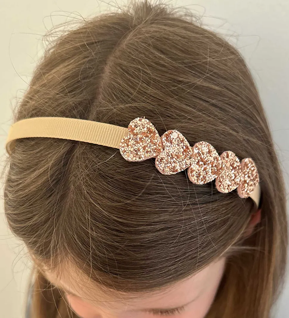 Elegant By Stær hårpynt i beige med glitrende hjerter på fronten.