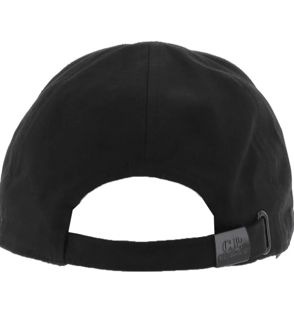 Lækker C.P. Company kasket i ensfarvet sort, og fortil står der “C. P. Company” med en kraftig brodering.