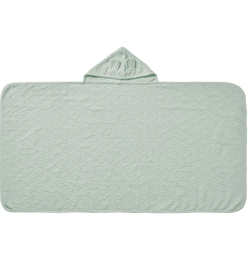Sød Cam Cam Copenhagen babyhåndklæde i støvet grøn med et fint bølgemønster. På babyhåndklædets hætte er der små ører.