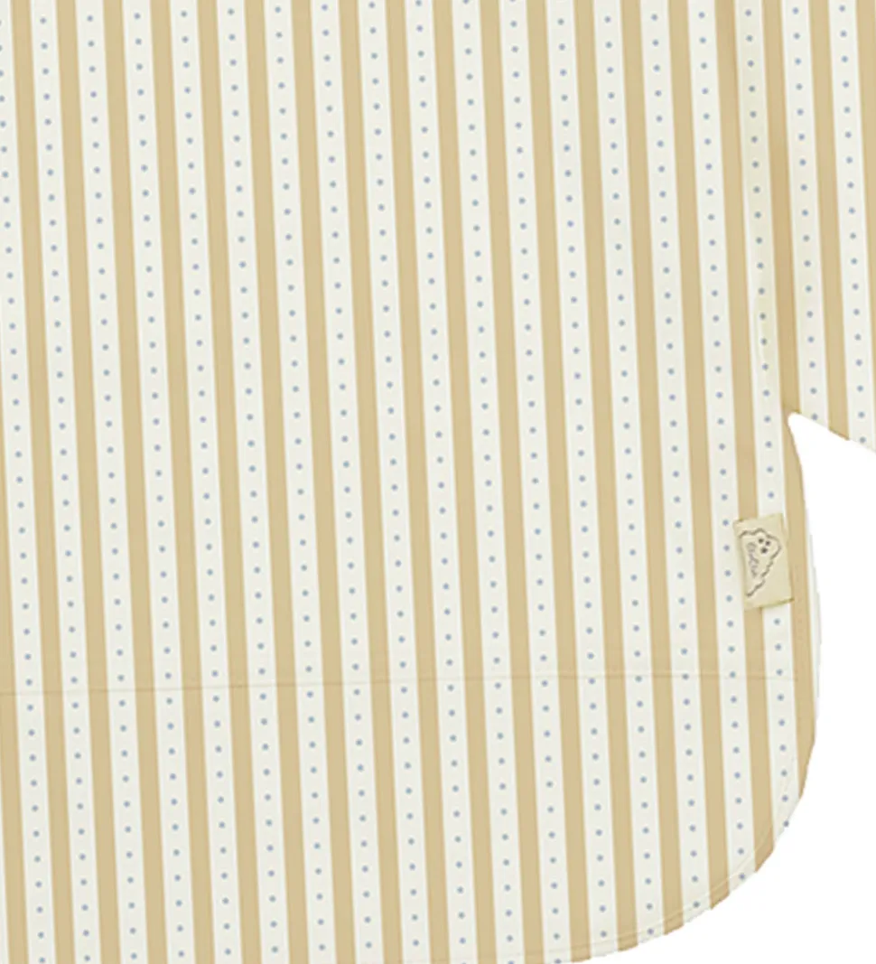 Fint Cam Cam forklæde i stribet hvid og støvet gul med små, blå prikker i de hvide striber.