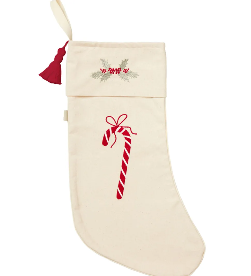 Cam Cam Copenhagen julesokken har en praktisk strop og en sød lille kvast i toppen, så den er let at hænge op over pejsen, dørhåndtaget eller på væggen.