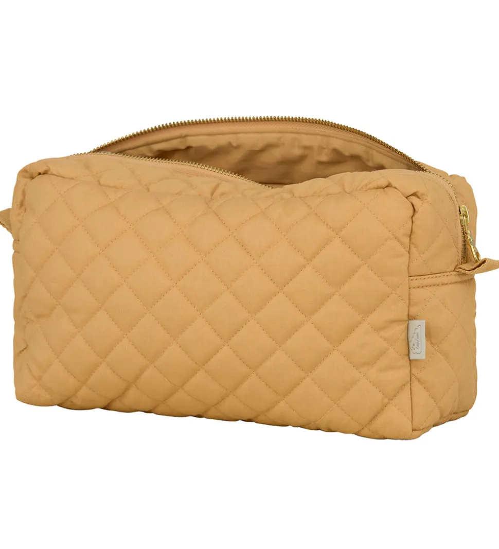 Flot Cam Cam Copenhagen toilettaske i ensartet honninggul samt med en quiltet struktur. Toilettaskens for er også honninggul.