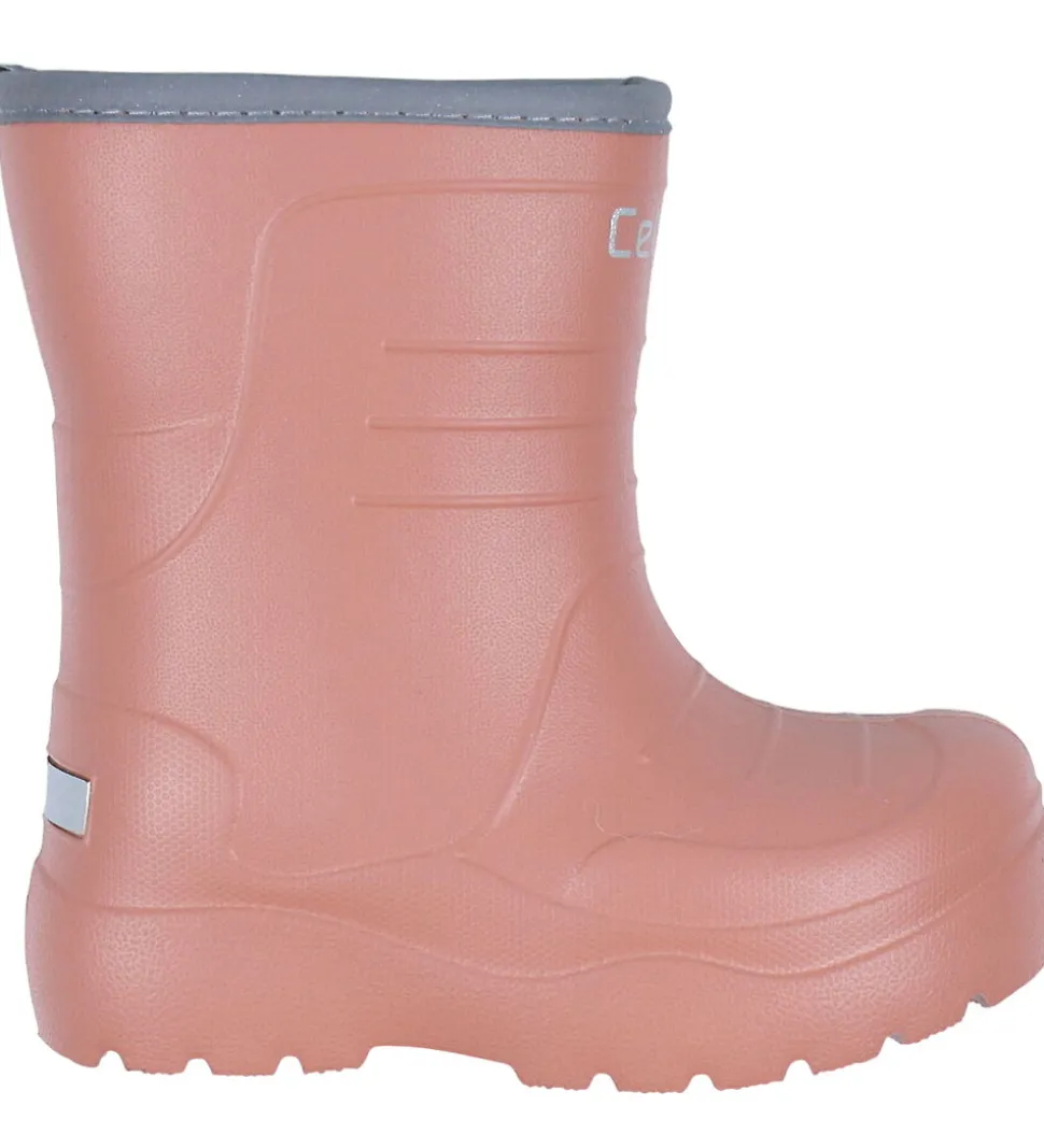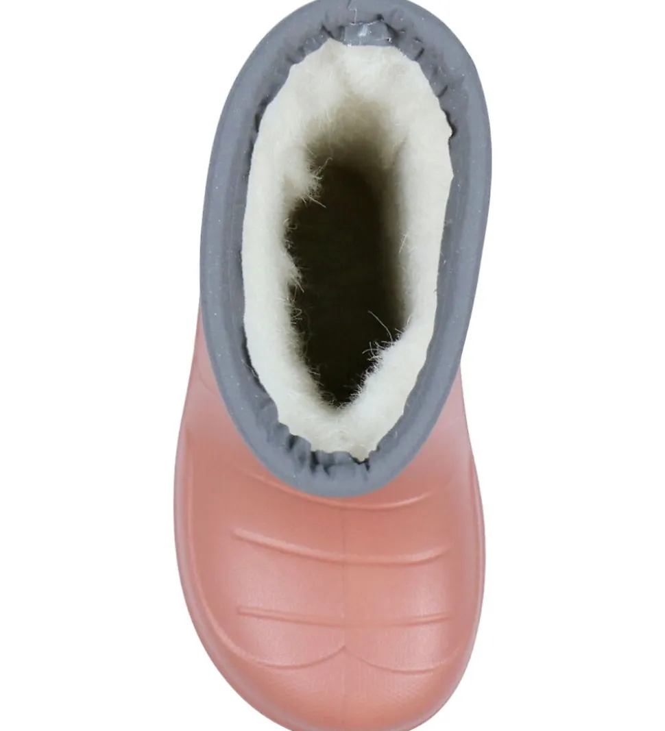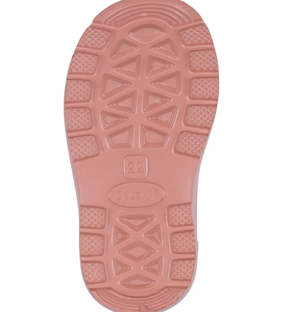 Skønne CeLaVi termostøvler i støvet rosa med reflekser øverst på skaftet og på hælen.
