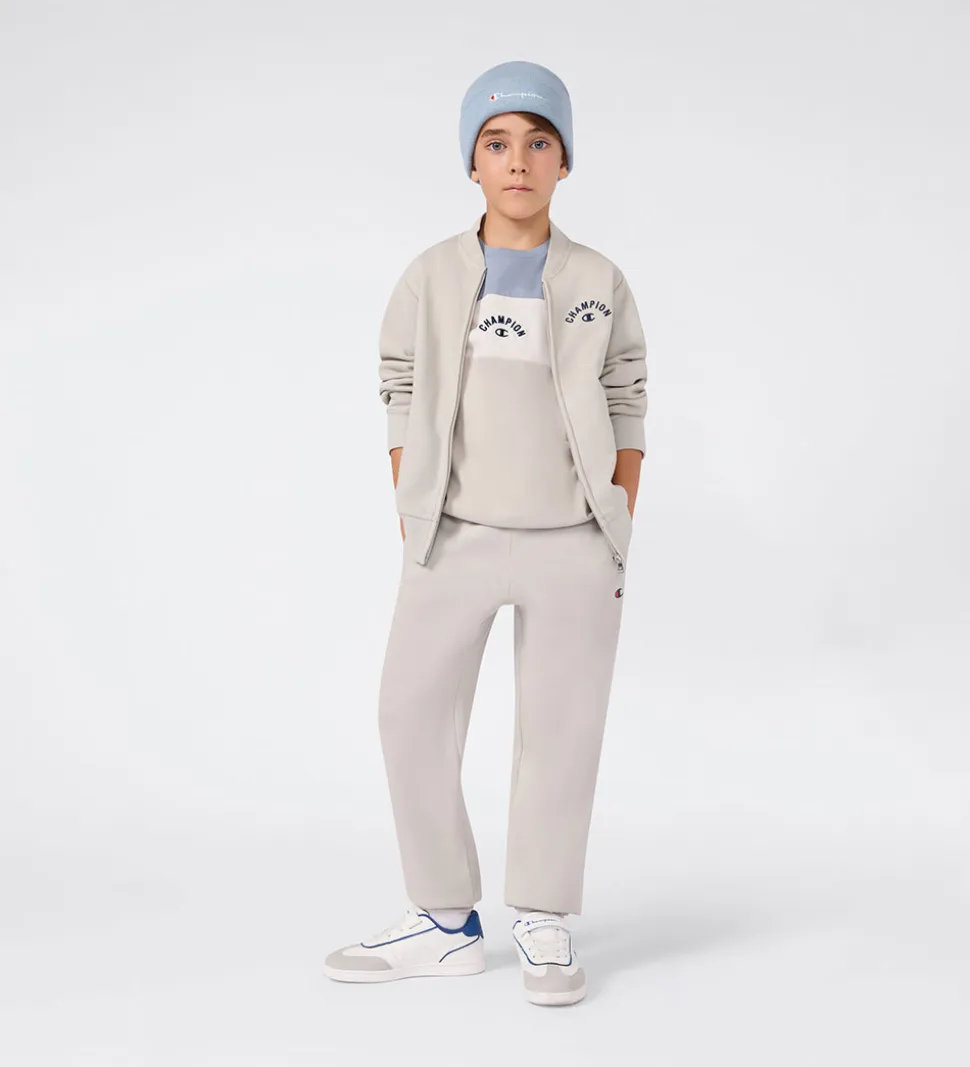 Flot Champion cardigan i beige med grønt skær og med et navyblåt logo broderet på venstre bryst. Cardiganen har lange ærmer og en gennemgående lynlås fortil. I siderne er der praktiske lommer, og ved alle åbninger er der ribkanter, som giver en god pasform. Indvendigt er der blødt, børstet bomuld.