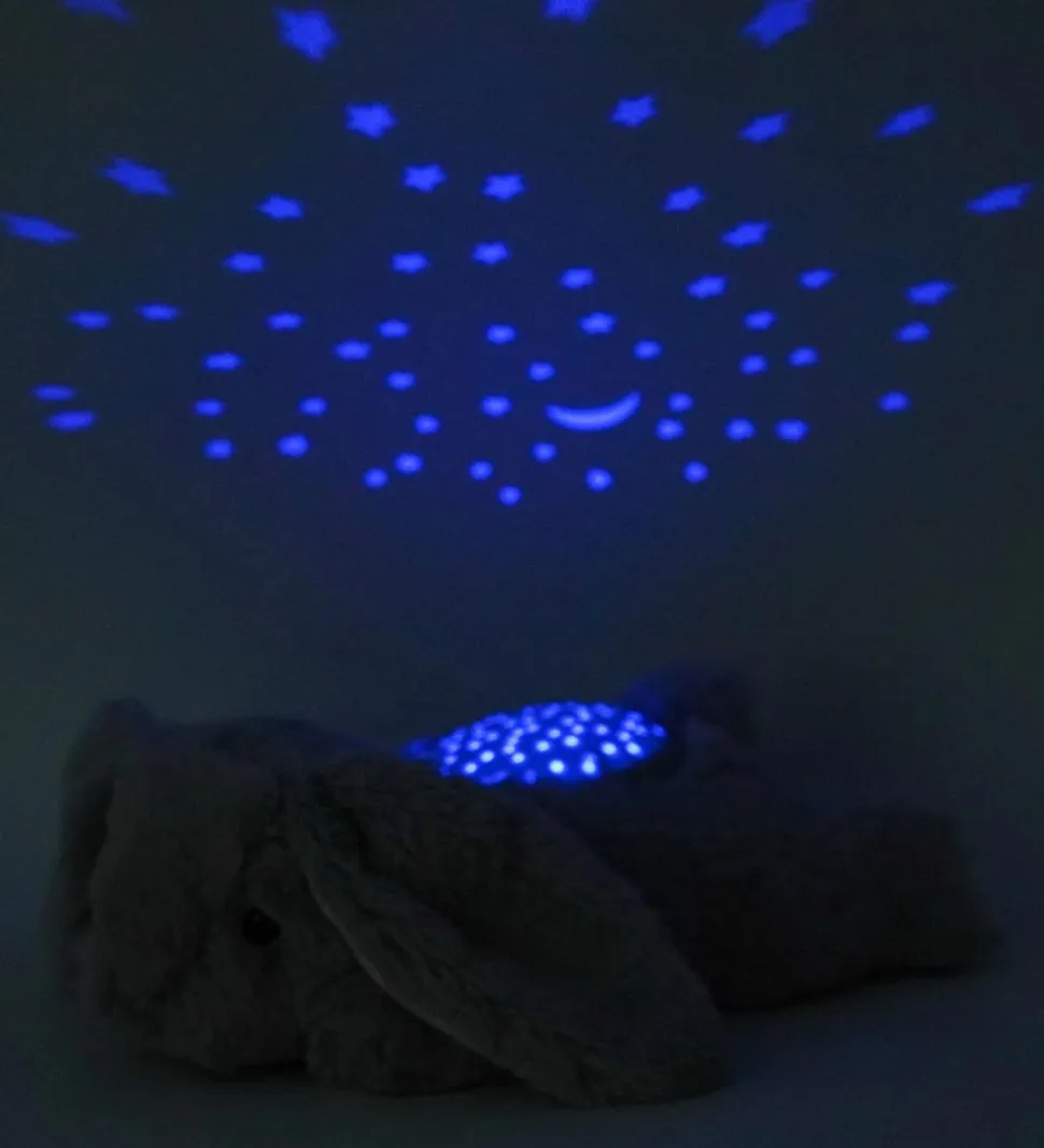 Cloud-B natlampen lyser op i tre forskellige farver og skifter automatisk mellem de tre, blå, grøn og orange. Lampen har stjerner over lampen, så den projekterer stjerner.