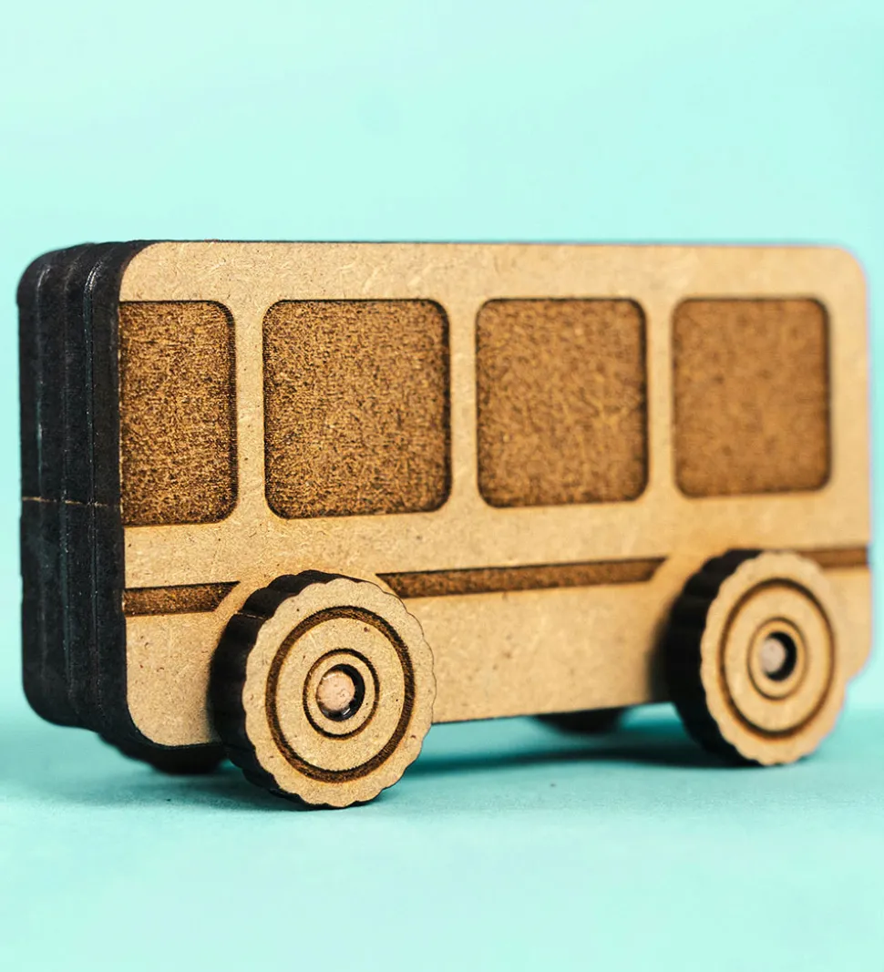 Med Crateit sættet kan du bygge din egen bus. Træet er ufarvet og du skal derfor selv farvelægge det. Det kan farves med alle typer af tusser, maling og farveblyanter.