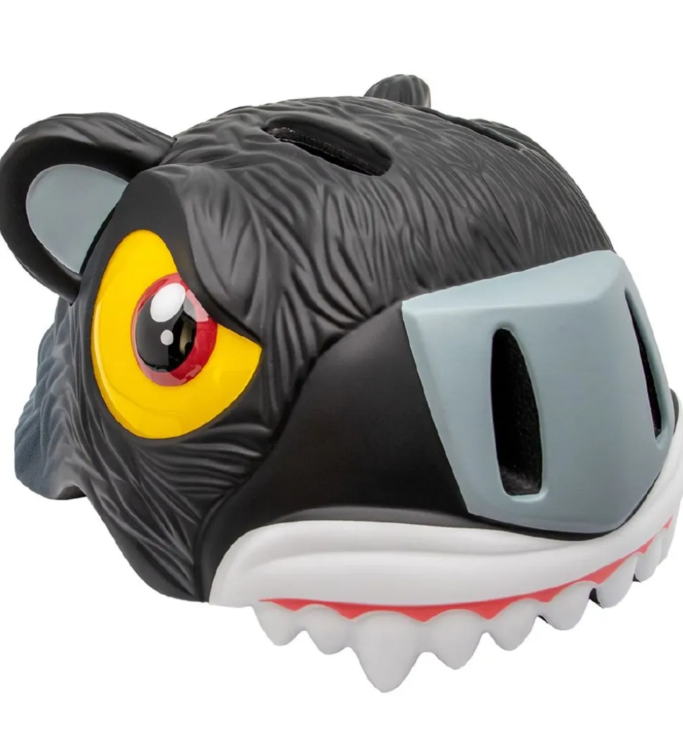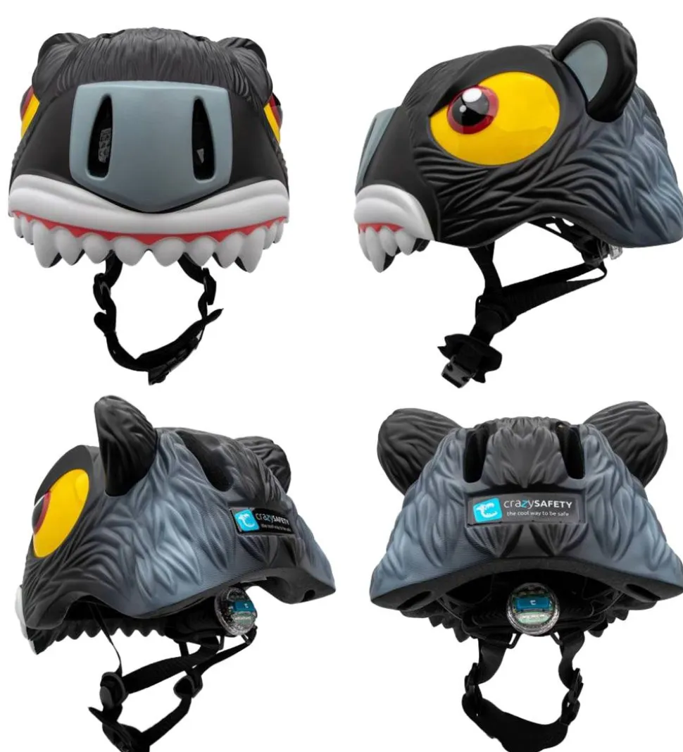 Sjov Crazy Safety cykelhjelm i sort og grå, med form som en panter.
