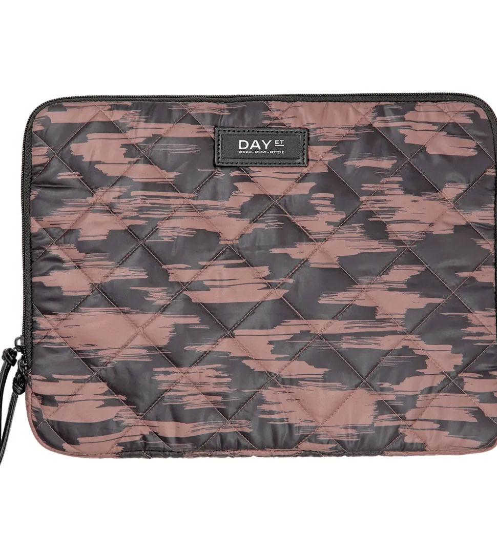 Smart DAY ET sleeve med et brunt og sort mønster med et hvidt patch fortil med et sort logo.