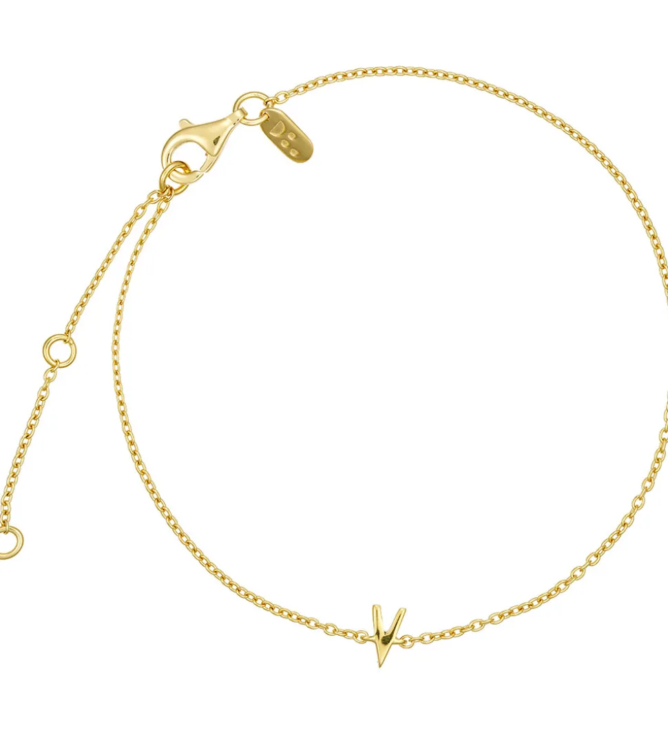 Flot Design Letters armbånd i 18 karat forgyldt, genanvendt sterlingsølv og med et vehæng formet som bogstavet V.