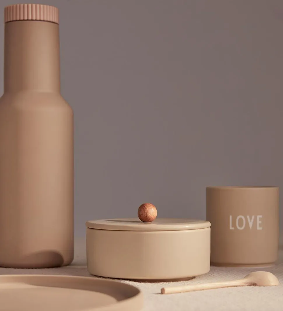 Design Letters skål har en rund form med et matchende låg, og det klassiske design gør, at den passer perfekt ind i hjemmet. Skålen er lavet af fint benporcelæn, som gør, at den ikke går så nemt i stykker.