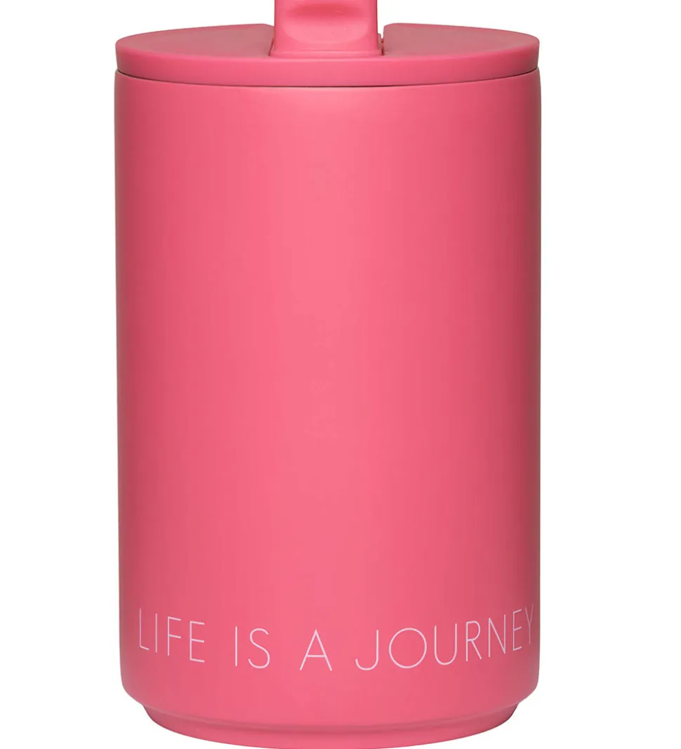 Flot Design Letters termokop i ensfarvet rosa med “Life is a journey” printet nederst.