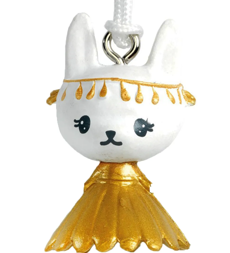 Sød Djeco nøglering med en lille, hvid kanin iført en guld kjole.