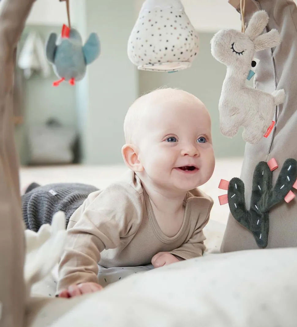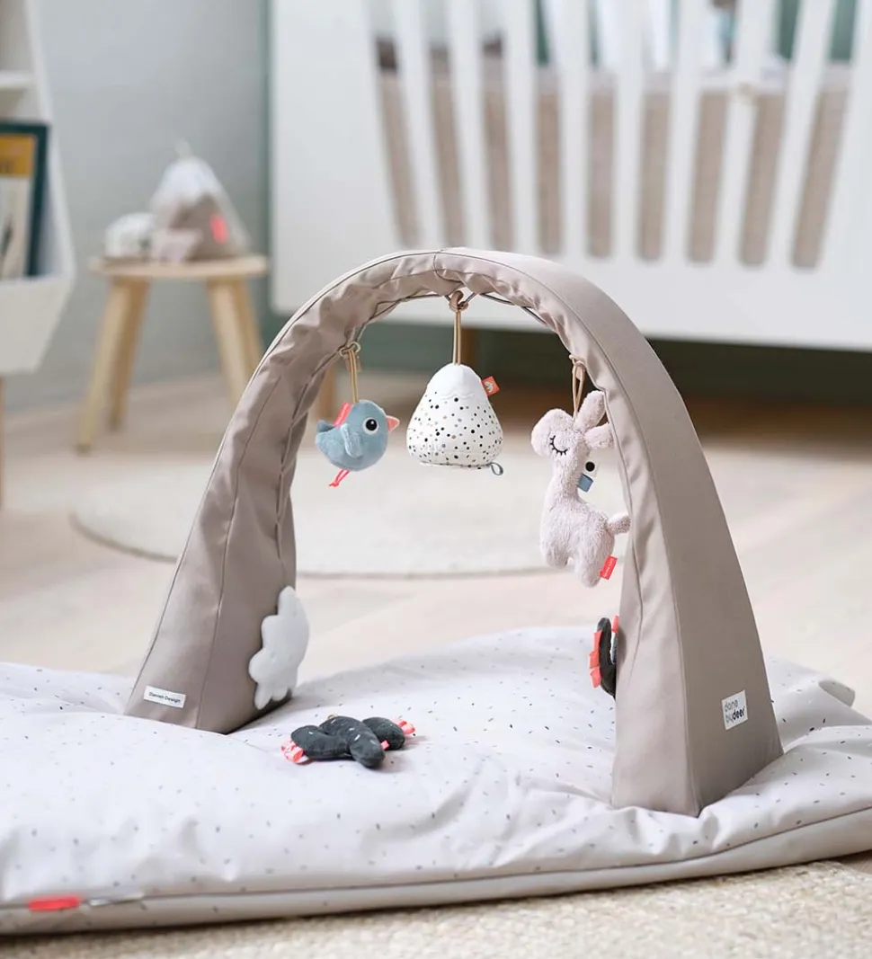 Skøn Done by Deer aktivitetsstativ i ‘Lalee’ tema, der stimulerer babys sanser.