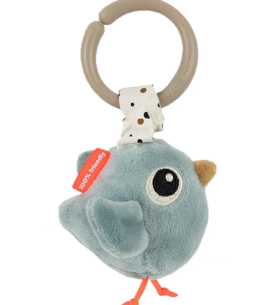 Done By Deer aktivitetstæppet har en rund form med en mønstret struktur og en let vattering, så baby ligger behageligt. Der medfølger 4 stykker legetøj med forskellige egenskaber, såsom en klokke, spejl og rangle, som stimulerer barnets sanser.