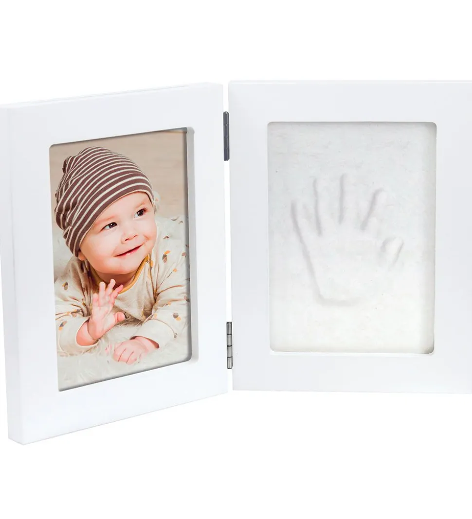 Smart Dooky håndaftryk sæt med en dobbelt billedramme i hvid. Sætte indeholder følgende: