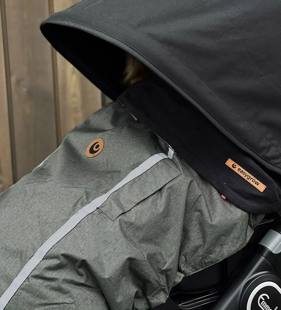 Easygrow regnslag og stormbetrækket er multifunktionelt, da det både kan bruges på de fleste barnevogne, klapvogne og bæreseler. Det monteres og justeres nemt og hurtigt med et snøresystem og knapper. Indvendigt er det foret med lækkert, blødt fleece.