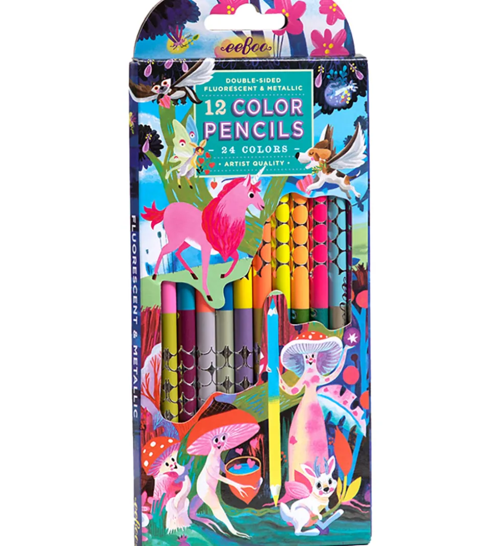 Søde Eeboo farveblyanter bestående af en kasse med 12 stk. i hver sin flotte farve med et metallisk skær.
