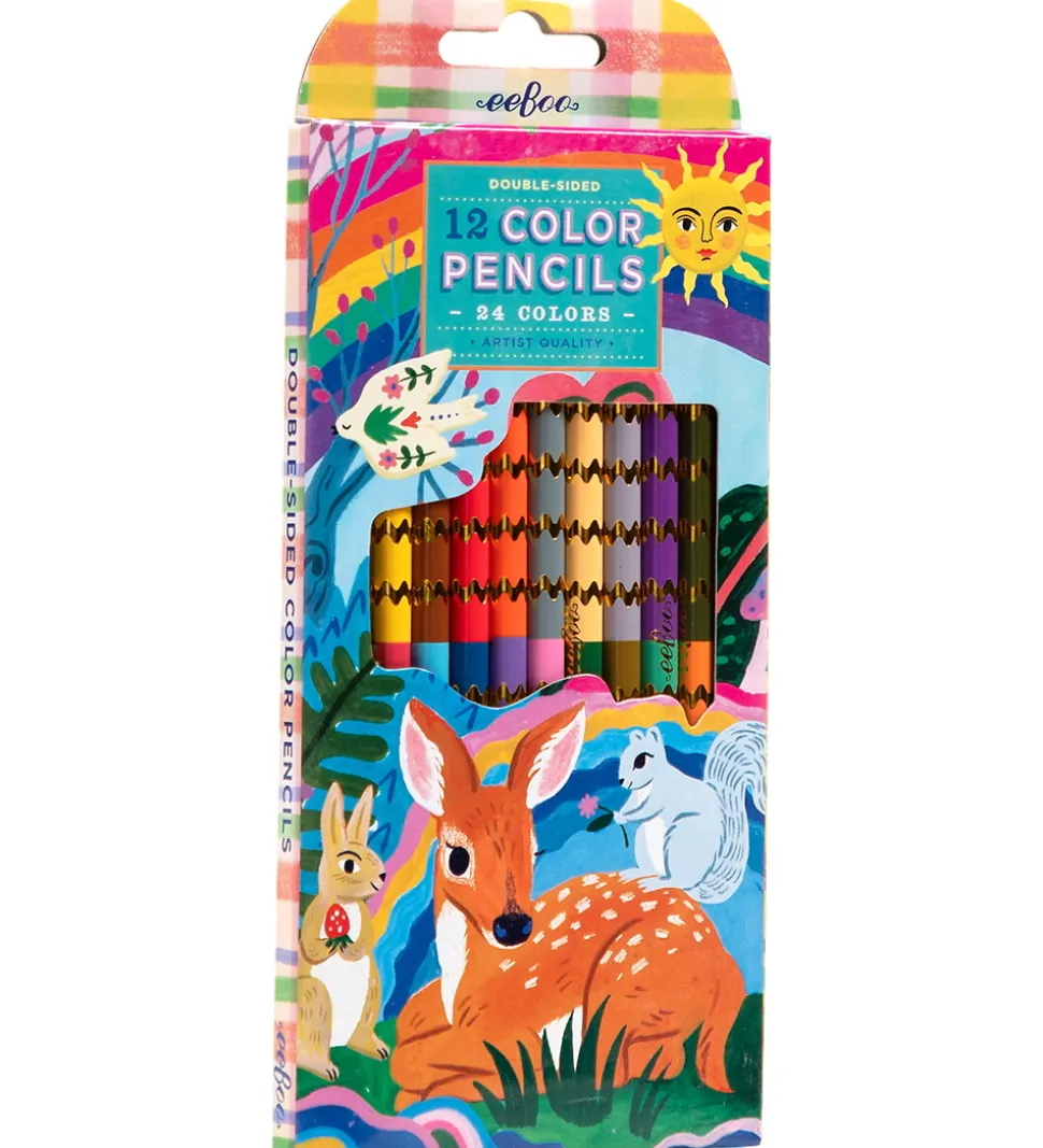 Flotte Eeboo farveblyanter med et levende og farverigt design, der inkluderer skovens dyr i smukke nuancer. Eeboo farvesættet indeholder 12 dobbeltsidede farveblyanter og leverer i alt 24 farver for maksimal kreativitet.